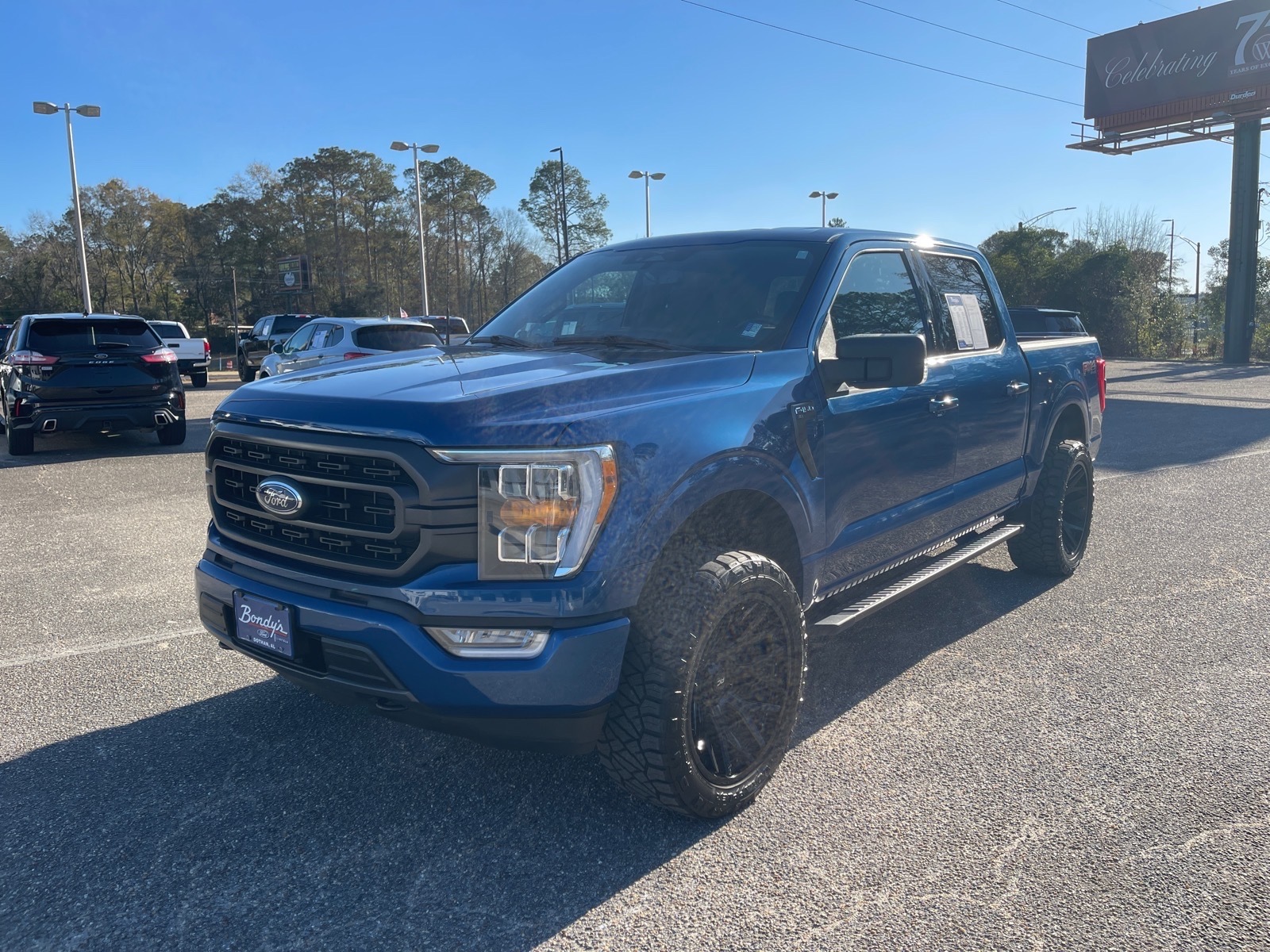 CARFAX One-Owner. Clean CARFAX. 2023 Ford F-150 XLT 4WD, 4-Wheel Disc Brakes, 6 Speakers, ABS brakes, Accent-Color Step Bars, Air Conditioning, Alloy wheels, AM/FM radio, Auto High-beam Headlights, Auto-Dimming Rear-View Mirror, Black 2-Bar Style Grille w/Black Surround/Accents, Body-Color Door & Tailgate Handles, Body-Color Front & Rear Bumpers, Box Side Decals, Brake assist, Bumpers: chrome, Class IV Trailer Hitch Receiver, Cloth 40/20/40 Front Seat, Compass, Delay-off headlights, Driver door bin, Driver vanity mirror, Dual front impact airbags, Dual front side impact airbags, Electronic Stability Control, Emergency communication system: SYNC 4 911 Assist, Equipment Group 302A High, Extended Range 36 Gallon Fuel Tank, Exterior Parking Camera Rear, Front anti-roll bar, Front Center Armrest w/Storage, Front fog lights, Front reading lights, Front wheel independent suspension, Fully automatic headlights, FX4 Off-Road Package, Heated door mirrors, Illuminated entry, Integrated Trailer Brake Controller, LED Sideview Mirror Spotlights, Low tire pressure warning, Occupant sensing airbag, Onboard 400W Outlet, Outside temperature display, Overhead airbag, Overhead console, Panic alarm, Passenger door bin, Passenger vanity mirror, Power door mirrors, Power Glass Heated Sideview Mirrors, Power steering, Power windows, Pro Trailer Backup Assist & Pro Trailer Hitch Assist, Radio data system, Radio: AM/FM SiriusXM w/360L, Radio: AM/FM Stereo w/6 Speakers, Rear reading lights, Rear step bumper, Rear window defroster, Remote keyless entry, Remote Start System, Security system, Speed control, Speed-sensing steering, Split folding rear seat, Steering wheel mounted audio controls, SYNC 4, SYNC 4 w/Enhanced Voice Recognition, Tachometer, Telescoping steering wheel, Tilt steering wheel, Traction control, Trailer Tow Package, Tray Style Floor Liner, Trip computer, Unique Sport Cloth 40/Console/40 Front-Seats, Variably intermittent wipers, Voltmeter, Wheels: 17Silver Painted Aluminum, Wheels: 186-Spoke Machined Aluminum, Wheels: 206-Spoke Dark Alloy Painted Aluminum, XLT Sport Appearance Package, 4WD. Atlas Blue Metallic 4WD 3.5L V6 EcoBoost 10-Speed Automatic THIS VEHICLE IS LOCATED AT BONDYS FORD LINCOLN AT 3615 ROSS CLARK CIRCLE DOTHAN, AL 36303. PLEASE CALL US AT 800-239-5171 TO ASK US ANY QUESTIONS! MON-FRI SALES IS HERE FROM 8:30 TO 7:00 AND SAT 8:30 TO 6:00. WE ARE CLOSED ON SUNDAYS. Call Toll Free 800-239-5171 or 334-792-5171.