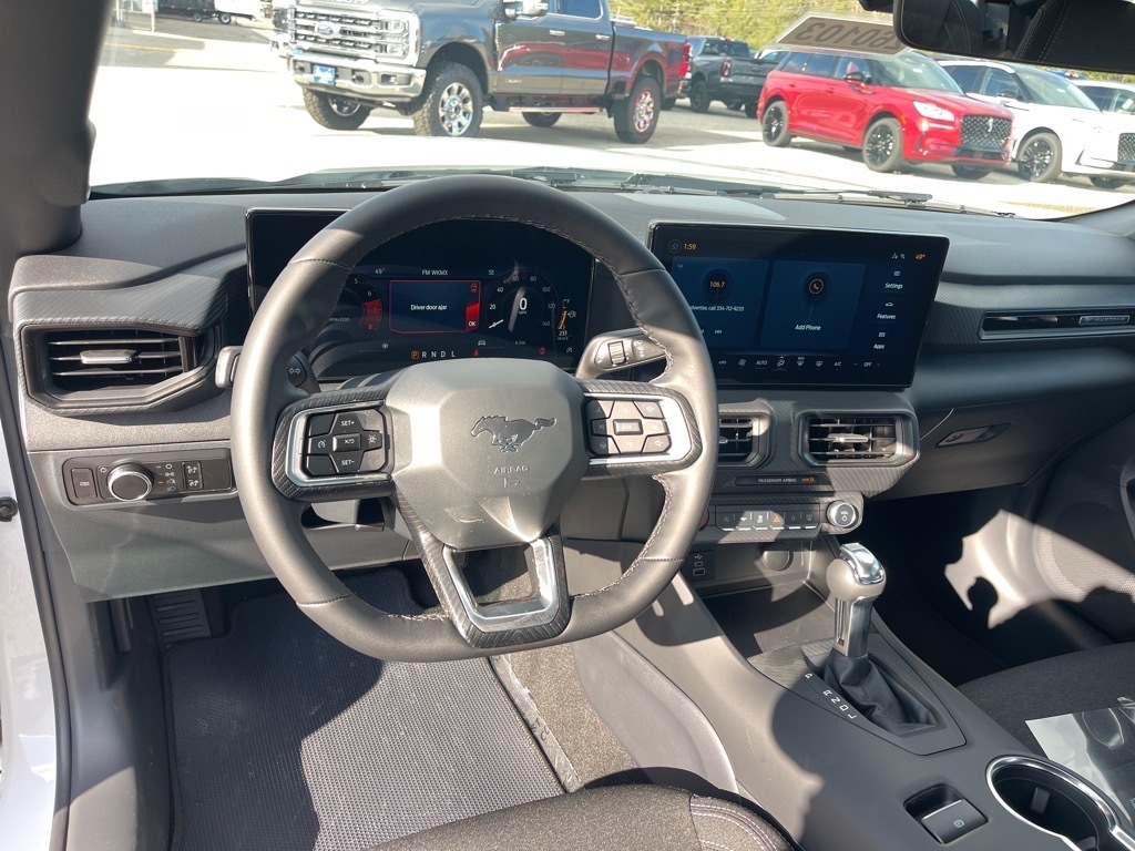 2026 Ford Mustang 4-Wheel Disc Brakes, ABS brakes, Air Conditioning, Alloy wheels, AM/FM Stereo, Auto High-beam Headlights, Automatic temperature control, Brake assist, Bumpers: body-color, Compass, Delay-off headlights, Driver door bin, Driver vanity mirror, Dual front impact airbags, Dual front side impact airbags, Electronic Stability Control, Emergency communication system: 911 Assist, Exterior Parking Camera Rear, Four wheel independent suspension, Front anti-roll bar, Front Bucket Seats, Front Center Armrest, Front dual zone A/C, Front reading lights, Fully automatic headlights, Illuminated entry, Knee airbag, Leather Shift Knob, Low tire pressure warning, Occupant sensing airbag, Outside temperature display, Overhead airbag, Overhead console, Panic alarm, Passenger door bin, Passenger vanity mirror, Power door mirrors, Power steering, Power windows, Radio data system, Rain sensing wipers, Rear anti-roll bar, Rear Parking Sensors, Rear window defroster, Remote keyless entry, Speed control, Speed-sensing steering, Speed-Sensitive Wipers, Split folding rear seat, Sport steering wheel, Steering wheel mounted audio controls, SYNC 4, Tachometer, Telescoping steering wheel, Tilt steering wheel, Traction control, Trip computer, Variably intermittent wipers, Voltmeter, Wheels: 18x 8Painted Shadow Silver Cast Alum. RWD EcoBoost 2.3L I4 GTDi DOHC Turbocharged VCT At our dealership, we have devoted ourselves to helping and serving our customers to the best of our ability. We believe the cars we offer are the highest quality and ideal for your life needs. We understand that you rely on our web site for accurate information, and it is our pledge to deliver you relevant, correct, and abundant content. Please do not hesitate to contact us with any questions you may have. Our staff is happy to answer any and all inquiries in a timely fashion. We look forward to doing business with you!