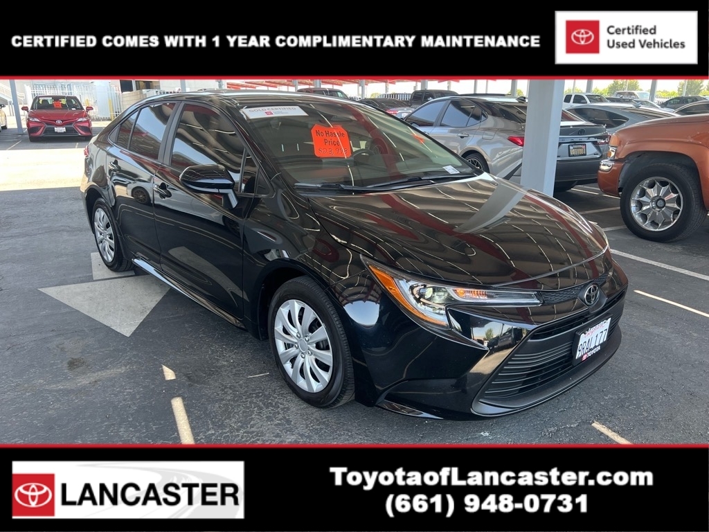 Clean CARFAX. Certified. Toyota Gold Certified Details: * Powertrain Limited Warranty: 84 Month/100,000 Mile (whichever comes first) from TCUV purchase date * Limited Warranty: 12 Month/12,000 Mile Limited Comprehensive Warranty: 12 Month/12,000 Mile (whichever comes first) from certified purchase date * Roadside Assistance for 7 Year / 100,000 Mile. Standard New-Car Financing Rates Available. Warranty honored at over 1,400 Toyota dealers in the continental U.S. & Canada. Trade-ins accepted. Trouble-free handling of your transaction, including DMV paperwork * Roadside Assistance * Vehicle History * Transferable Warranty * 160 Point Inspection * Warranty Deductible: $0 2024 Toyota Corolla LE 32/41 City/Highway MPG We make it easy for you with a rigorous multi-point full vehicle inspection to ensure the cars we sell are ready for a safe drive on the road. * Toyota of Lancaster is your Antelope Valley Toyota Dealer. Come on down today to 43301 12th St. West Lancaster, CA 93534 and make your dreams come true.*