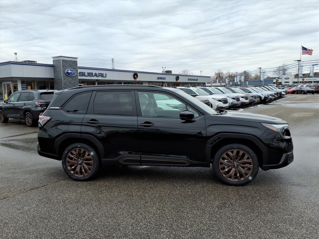 Vehicle Details2026 Subaru Forester Sport AWD - 4-cyl, 2.5L gasoline - located in Charleston, WV. Ready for daily commutes and weekend adventures, this Sport model pairs Subarus legendary Symmetrical All-Wheel Drive with a responsive 2.5L four-cylinder engine for confident handling in rain, snow, or gravel. Youll appreciate modern convenience and safety features like Adaptive Cruise Control and Lane Keep Assist, which help maintain speed and lane position on long drives. Stay connected with Apple CarPlay and Android Auto for seamless smartphone integration, plus Automatic Climate Control to keep the cabin comfortable no matter the weather. This Subaru Forester Sport offers a roomy interior, versatile cargo space, and rugged styling that stands out in town and on backroads. Fuel efficiency, reliability, and Subarus practical design make it an excellent choice for families and outdoor enthusiasts alike. Located in Charleston, WV, this vehicle is being offered at the best price in the area - competitive, transparent, and ready to move. Schedule a test drive today to experience the confident AWD system, smooth 4-cyl power, and advanced driver assistance features in person. Financing options available to fit your budget. Act now to secure this exceptional Subaru Forester Sport at the best local value.EquipmentThe leather seats in this model are a must for buyers looking for comfort, durability, and style. This unit has auto-adjust speed for safe following. Protect this unit from unwanted accidents with a cutting edge backup camera system. The vehicle offers Android Auto for seamless smartphone integration. The Subaru Forester keeps you comfortable with Auto Climate. This unit offers Apple CarPlay for seamless connectivity. It features a hands-free Bluetooth phone system. Lane Keep Assist in it helps maintain safe driving by gently steering to stay within the lane. Maintaining a stable interior temperature in this model is easy with the climate control system. This model is painted with a sleek and sophisticated black color. The vehicle is equipped with all wheel drive. This unit has a 4 Cyl, 2.5L high output engine. Enjoy the convenience of the power liftgate on this vehicle. Control your garage door with its built in HomeLink System.PackagesHarman/kardon Speaker System and Power Rear Gate and Reverse Automatic Braking: Reverse Automatic Braking (RAB) System; Harman/kardon Speaker System; Power Rear Gate; SI-Dri