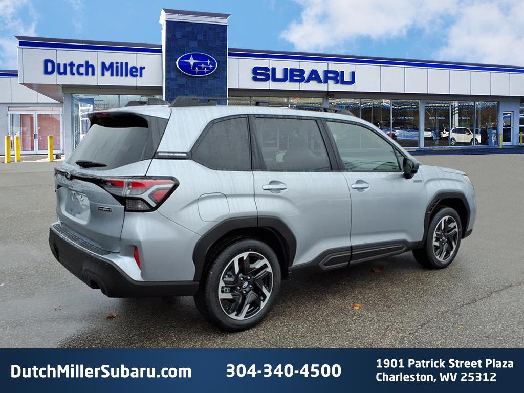 Vehicle Details2025 Subaru Forester Limited Hybrid AWD - located in Charleston, WV - combines fuel-efficient performance with upscale comfort and advanced safety features. Powered by a 4-cylinder, 2.5L Full Hybrid Electric (FHEV) powertrain and standard all-wheel drive, this Subaru Forester delivers confident handling in varied road and weather conditions while maximizing fuel economy for daily commuting and weekend adventures. The Limited trim elevates the cabin with premium leather seats and a thoughtfully designed interior that enhances comfort on long drives. Stay connected and entertained with Apple CarPlay and hands-free Bluetooth, providing seamless smartphone integration and voice-controlled calling for safer, distraction-free operation. Advanced driver assistance technologies such as adaptive cruise control and lane keep assist work together to reduce driver fatigue and help maintain vehicle position and safe following distances on highways. This Subaru Forester Limited Hybrid is ideally equipped for families and outdoor enthusiasts who value efficiency, traction, and modern conveniences. Priced to move, this vehicle is available at the best price in the Charleston, WV area - offering exceptional value for a hybrid SUV with Subarus hallmark reliability and AWD capability. Schedule a test drive today to experience the refined hybrid performance, premium amenities, and advanced safety features that make this 2025 Subaru Forester Limited Hybrid an outstanding choice.EquipmentApple CarPlay: Seamless smartphone integration for it - stay connected and entertained on the go! Never get into a cold vehicle again with the remote start feature on the Subaru Forester. This 2025 Subaru Forester offers Android Auto for seamless smartphone integration. This 2025 Subaru Forester features a hands-free Bluetooth phone system. Lane Keep Assist in this model helps maintain safe driving by gently steering to stay within the lane. This Subaru Forester has automated speed control that adjusts to maintain a safe following distance, enhancing highway driving convenience. Youll never again be lost in a crowded city or a country region with the navigation system on this Subaru Forester. See whats behind you with the back up camera on this unit. The leather seats in this mid-size suv are a must for buyers looking for comfort, durability, and style. The Subaru Forester features a HomeLink System. The vehicle gleams with an elegant silver cle