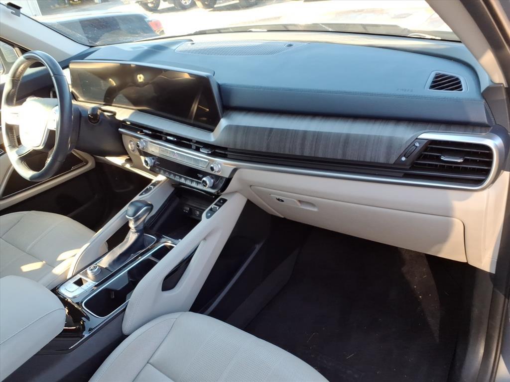 This vehicle is a Kia Telluride EX from 2023, with an odometer reading of 74,769 miles. It is powered by a 3.8 liter V6 291hp 262 lb-ft engine with direct injection, and has an enduring silver exterior. It also boasts an impressive fuel economy of 20 mpg in the city and 26 mpg on the highway, making it an efficient choice for those looking to save on gas. The exterior of this motorcar is complemented by a gray/navy interior, complete with leather-trimmed seats and touch screen display, Bluetooth audio connection, blind spot sensor, hill start assist, and navigation system with voice recognition. Additionally, this motorcar has been awarded a 5 out of 5 star crash test rating, making it a safe and reliable choice for anyone looking to make their next automotive purchase.