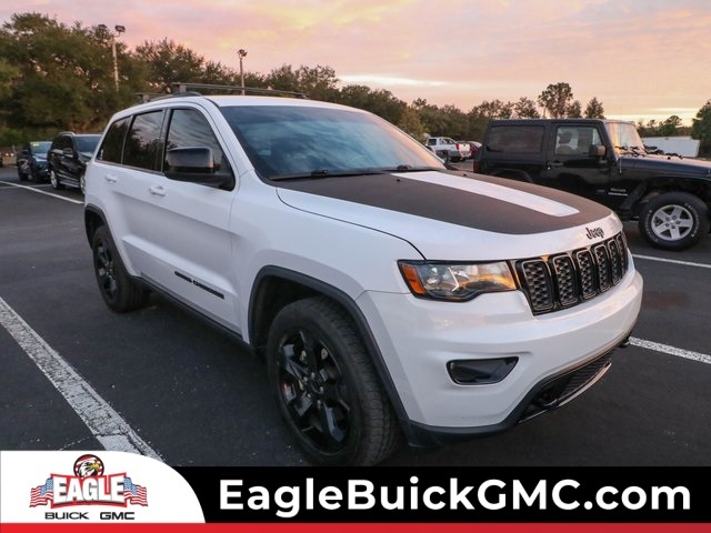 CARFAX One-Owner. 2018 Jeep Grand Cherokee Upland Edition Bright White Clearcoat This Grand Cherokee is equipped with features such as Quick Order Package 2BC Upland (Auto-Dimming Rear-View Mirror, Blue-Accent Badges, Dark Day Light Opening Moldings, Dark Headlamp Bezel Finish, Dark Lens Taillamps, Delete Laredo Badge, Gloss Black Exterior Accents, Gloss Black Grille w/Black Honeycomb, Gloss Black Rear Fascia Applique, Gloss Black Roof Rails, Jeep Black Gloss Badging, Liquid Titanium Accents, Power 4-Way Driver Lumbar Adjust, Power 8-Way Driver/Manual Passenger Seat, Rear Fascia Black MIC Step Pad, Steering Wheel Mounted Audio Controls, Tow Hooks, and Wheels: 20" x 8.0" Gloss Black Painted Aluminum), Security & Convenience Group (115V Auxiliary Power Outlet, Power Liftgate, Security Alarm, and Universal Garage Door Opener), Upland Package, 4WD, 1-Year SiriusXM Guardian Trial, 3.45 Rear Axle Ratio, 4-Wheel Disc Brakes, 5-Year SiriusXM Traffic Service, 5-Year SiriusXM Travel Link Service, 6 Speakers, 8.4" Touchscreen Display, ABS brakes, Air Conditioning, Alloy wheels, AM/FM radio, Anti-whiplash front head restraints, Apple CarPlay, Apple CarPlay/Android Auto, Automatic temperature control, Brake assist, Bumpers: body-color, Cargo Compartment Cover, Cloth Bucket Seats, Compass, Delay-off headlights, Driver door bin, Driver vanity mirror, Dual front impact airbags, Dual front side impact airbags, Electronic Stability Control, For Details Visit DriveUconnect.com, Four wheel independent suspension, Front anti-roll bar, Front Bucket Seats, Front Center Armrest w/Storage, Front dual zone A/C, Front fog lights, Front License Plate Bracket, Front reading lights, Fully automatic headlights, Google Android Auto, GPS Antenna Input, GPS Navigation, HD Radio, Heated door mirrors, Illuminated entry, Integrated Voice Command w/Bluetooth, Knee airbag, Leather Shift Knob, Low tire pressure warning, Normal Duty Suspension, Occupant sensing airbag, Outside temperature display, Overhead airbag, Overhead console, Panic alarm, ParkView Rear Back-Up Camera, Passenger door bin, Passenger vanity mirror, Power door mirrors, Power steering, Power windows, Radio data system, Radio: Uconnect 4 w/7" Display, Radio: Uconnect 4C Nav w/8.4" Display, Rear anti-roll bar, Rear reading lights, Rear seat center armrest, Rear window defroster, Rear window wiper, Remote keyless entry, SiriusXM Traffic Plus, SiriusXM Travel Link, Speed control, Speed-Sensitive Wipers, Split folding rear seat, Spoiler, Steering wheel mounted audio controls, Tachometer, Telescoping steering wheel, Tilt steering wheel, Traction control, Trip computer, USB Host Flip, Variably intermittent wipers, and Wheels: 17" x 8.0" Silver AluminuM. Awards: * 2018 KBB.com 10 Most Awarded Brands