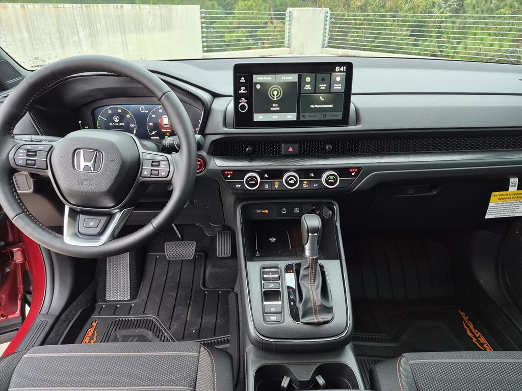 2026 Honda CR-V Hybrid TrailSport 2.0L I4 DOHC 16V eCVT AWD 4-Wheel Disc Brakes, 8 Speakers, ABS brakes, Adaptive Cruise Control: Adaptive Cruise Control (ACC) with Low-Speed Follow, Air Conditioning, Alloy wheels, AM/FM radio, Apple CarPlay/Android Auto, Auto High-beam Headlights, Automatic temperature control, Blind Spot Information (BSI) System warning, Brake assist, Bumpers: body-color, Cloth Seat Trim, Compass, Delay-off headlights, Driver door bin, Driver vanity mirror, Dual front impact airbags, Dual front side impact airbags, Electronic Stability Control, Exterior Parking Camera Rear, Four wheel independent suspension, Front anti-roll bar, Front Bucket Seats, Front Center Armrest, Front dual zone A/C, Front reading lights, Fully automatic headlights, Heated door mirrors, Heated Front Bucket Seats, Heated front seats, Heated steering wheel, Illuminated entry, Knee airbag, Leather Shift Knob, Leather steering wheel, Low tire pressure warning, Occupant sensing airbag, Outside temperature display, Overhead airbag, Overhead console, Panic alarm, Passenger door bin, Passenger vanity mirror, Power door mirrors, Power driver seat, Power moonroof, Power steering, Power windows, Radio data system, Radio: 320-Watt AM/FM Audio System, Rear anti-roll bar, Rear reading lights, Rear seat center armrest, Rear side impact airbag, Rear window defroster, Rear window wiper, Remote keyless entry, Security system, Speed control, Speed-sensing steering, Speed-Sensitive Wipers, Split folding rear seat, Spoiler, Steering wheel mounted audio controls, Telescoping steering wheel, Tilt steering wheel, Traction control, Trip computer, Turn signal indicator mirrors, Variably intermittent wipers, and Wheels: 18Shark Grey. 38/33 City/Highway MPG Price includes $1,995 in dealer added accessories.