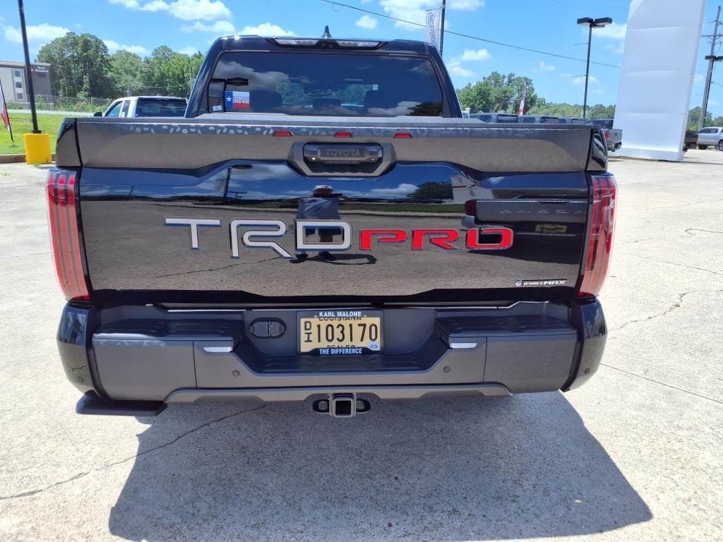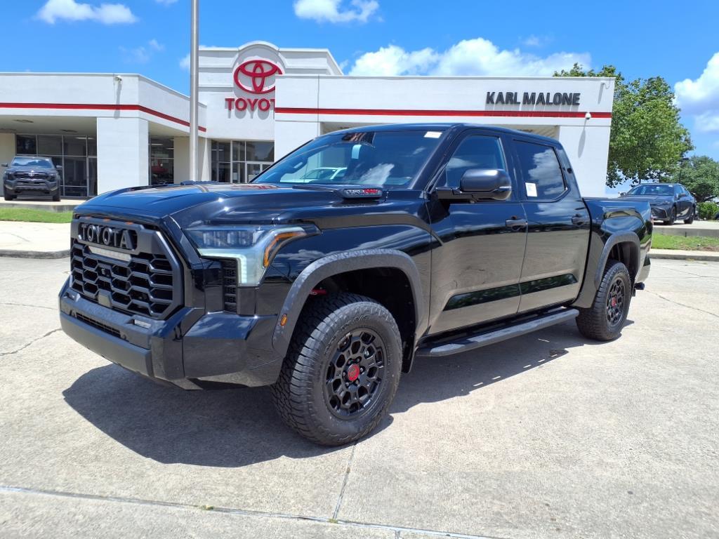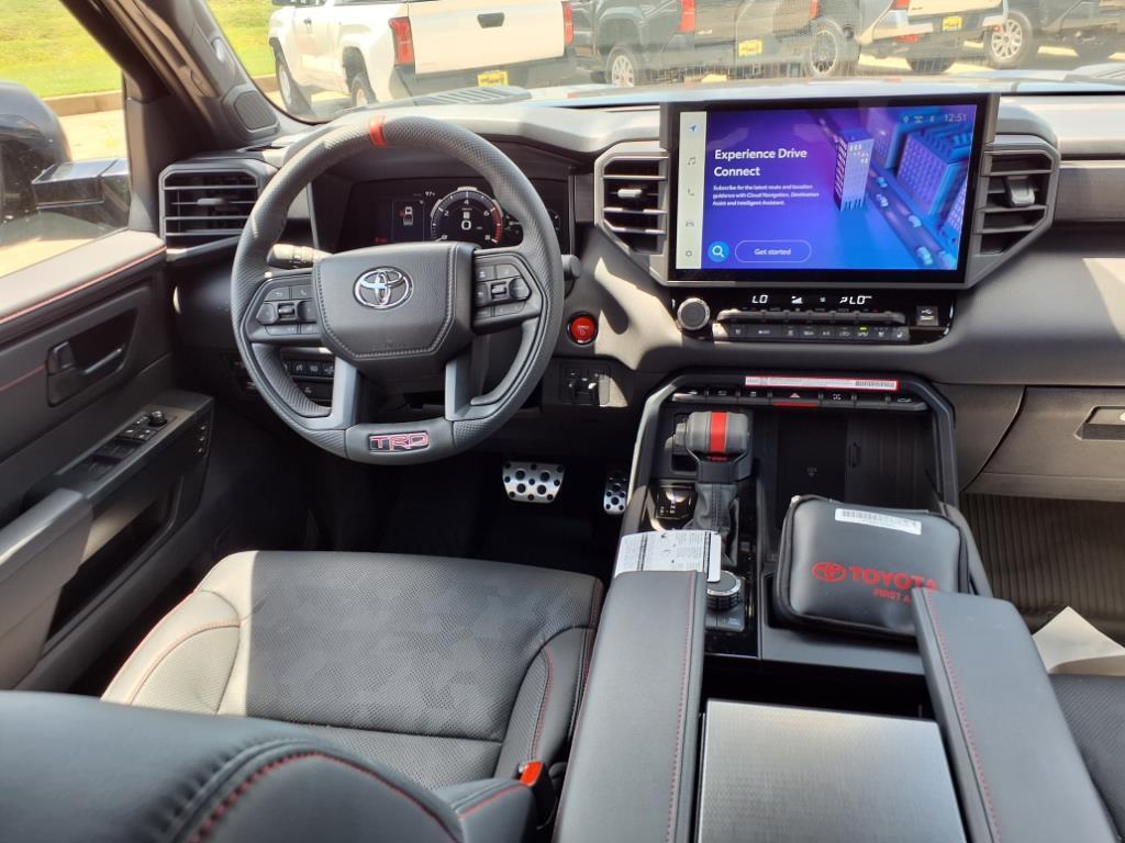 2025 Toyota Tundra Hybrid TRD Pro Midnight Black 4WD 10-Speed Automatic 3.4L V6 3.4L V6, 12 Speakers, 3.31 Axle Ratio, 4-Wheel Disc Brakes, ABS brakes, Air Conditioning, Alloy wheels, AM/FM radio: SiriusXM, Apple CarPlay/Android Auto, Auto High-beam Headlights, Auto-dimming door mirrors, Auto-dimming Rear-View mirror, Automatic temperature control, Bed Step (TMS), Brake assist, Bumpers: body-color, Delay-off headlights, Driver door bin, Driver vanity mirror, Dual front impact airbags, Dual front side impact airbags, Electronic Stability Control, Emergency communication system: Safety Connect (10-year trial), Exterior Parking Camera Rear, Front anti-roll bar, Front Bucket Seats, Front Center Armrest, Front dual zone A/C, Front fog lights, Front reading lights, Front wheel independent suspension, Fully automatic headlights, Garage door transmitter: HomeLink, Heated & Ventilated Front Bucket Seats, Heated door mirrors, Heated front seats, Heated steering wheel, Illuminated entry, Knee airbag, Leather Shift Knob, Leather steering wheel, Low tire pressure warning, Memory seat, Navigation System, Occupant sensing airbag, Outside temperature display, Overhead airbag, Overhead console, Panic alarm, Passenger door bin, Passenger vanity mirror, Power door mirrors, Power driver seat, Power moonroof, Power passenger seat, Power steering, Power windows, Radio data system, Radio: Premium Audio w/JBL, Rear reading lights, Rear seat center armrest, Rear step bumper, Rear window defroster, Remote keyless entry, Security system, SofTex Seat Trim, Speed control, Speed-sensing steering, Split folding rear seat, Sport steering wheel, Steering wheel mounted audio controls, Tachometer, Telescoping steering wheel, Tilt steering wheel, Traction control, TRD Cast Aluminum Running Board (TMS), TRD Pro Package, Trip computer, Turn signal indicator mirrors, Variably intermittent wipers, Ventilated front seats, Voltmeter, Wheel Locks (TMS), Wheels: 18x 8Black BBS Forged Aluminum, 3.4L V6. TRD Pro Package, 3.4L V6, 12 Speakers, 3.31 Axle Ratio, 4-Wheel Disc Brakes, ABS brakes, Air Conditioning, Alloy wheels, AM/FM radio: SiriusXM, Apple CarPlay/Android Auto, Auto High-beam Headlights, Auto-dimming door mirrors, Auto-dimming Rear-View mirror, Automatic temperature control, Bed Step (TMS), Brake assist, Bumpers: body-color, Delay-off headlights, Driver door bin, Driver vanity mirror, Dual front impact airbags, Dual front side impact airbags, Electronic Stability Control, Emergency co
