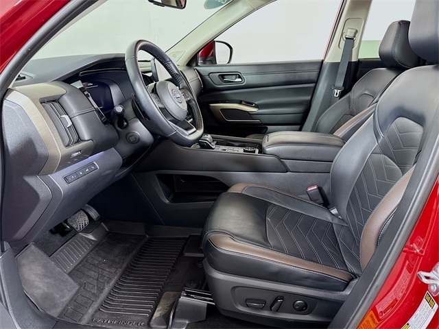 Scarlet Ember Tintcoat 2023 Nissan Pathfinder Platinum 4WD 9-Speed Automatic V6 LOCAL TRADE, 4WD, 13 Speakers, Air Conditioning, AM/FM radio: SiriusXM, Automatic temperature control, Black Splash Guards (Set of 4), Bose Premium Audio System, Cargo Area Protector, Cargo Net, Cargo Package, First Aid Kit, Front dual zone A/C, Heads-Up Display, LED Fog Lamps, Navigation system: NissanConnect Navigation, NissanConnect w/Navigation & Services, Radio data system, Radio: AM/FM Audio System, Rear air conditioning, Rear window defroster.