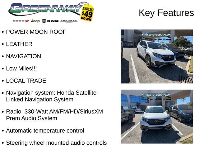 POWER MOON ROOF, LEATHER, NAVIGATION, Low Miles!!!, LOCAL TRADE, ABS brakes, Adaptive Cruise Control: Adaptive Cruise Control (ACC) with Low-Speed Follow, Apple CarPlay/Android Auto, Auto High-beam Headlights, Auto-dimming Rear-View mirror, Automatic temperature control, Blind Spot Information (BSI) System warning, Exterior Parking Camera Rear, Forward collision: Collision Mitigation Braking System (CMBS) FCW mitigation, Heated Front Bucket Seats, Navigation system: Honda Satellite-Linked Navigation System, Power Liftgate, Radio: 330-Watt AM/FM/HD/SiriusXM Prem Audio System, Remote keyless entry, Speed-Sensitive Wipers, Steering wheel mounted audio controls, Turn signal indicator mirrors, Wheels: 19" Machine-Finished Alloy w/Gray Inserts. CARFAX One-Owner.