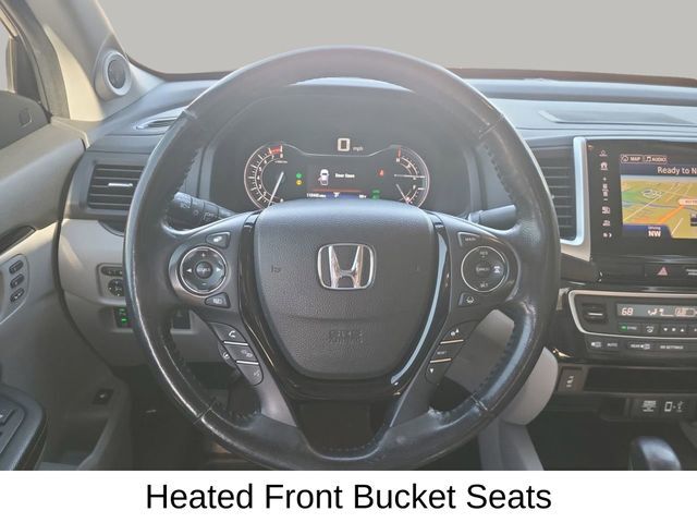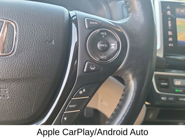 Dual front airbags, front seat mounted side-impact airbags, dual head curtain side-impact airbags with rollover sensor, four-wheel disc brakes with anti-lock, brake assist, electronic brake distribution, vehicle stability assist, traction control, hill start assist, rearview camera, daytime running lights, remote keyless entry, security system, push button engine start, Bluetooth hands free phone system, and tire pressure monitoring system with Tire Fill Assist and location/pressure indicators. RTS adds smart entry system, remote engine start, fog lights, and HomeLink remote system. RTL-T adds LED daytime running lights, Honda LaneWatch, HondaLink, and navigation system. RTL-E adds lane keeping assist system, adaptive cruise control, LED headlights with automatic high beam, blind spot information system with cross traffic monitor, collision mitigation braking system, forward collision warning, lane departure warning, road departure mitigation, and parking sensors.