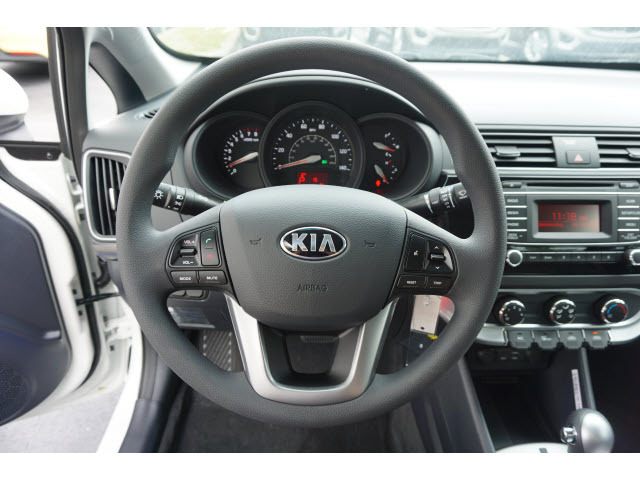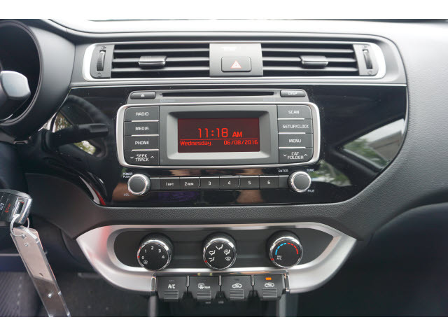 You'll love the look and feel of this 2016 Kia Rio LX, which features stability control. It has a 1.6 liter 4 Cylinder engine. We've got it for $16,365. This one's a keeper. It has a crash test safety rating of 4 out of 5 stars. It has great mileage with 27 MPG in the city and 37 MPG on the highway. A dazzling white exterior and a black interior are just what you need in your next ride. Good cars go fast. Give us a call and schedule an appointment today!