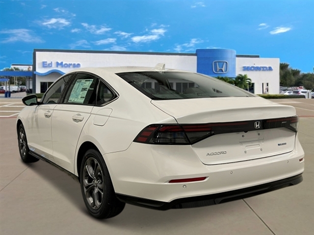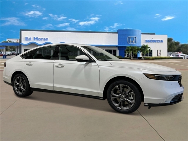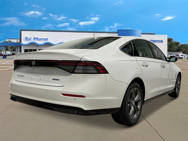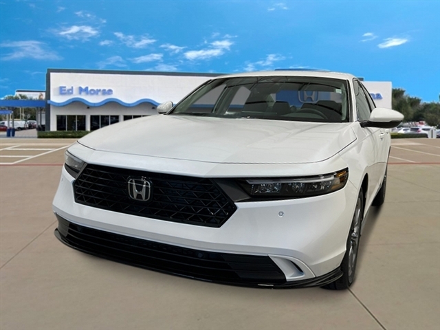 Platinum White Pearl 2025 Honda Accord Hybrid EX-L 51/44 City/Highway MPG 4-Wheel Disc Brakes, 8 Speakers, ABS brakes, Adaptive Cruise Control: Adaptive Cruise Control (ACC) with Low-Speed Follow, Air Conditioning, Alloy wheels, AM/FM radio, Apple CarPlay/Android Auto, Auto High-beam Headlights, Auto-dimming Rear-View mirror, Automatic temperature control, Blind Spot Information (BSI) System warning, Brake assist, Bumpers: body-color, Compass, Delay-off headlights, Driver door bin, Driver vanity mirror, Dual front impact airbags, Dual front side impact airbags, Electronic Stability Control, Emergency communication system: HondaLink, Exterior Parking Camera Rear, Four wheel independent suspension, Front anti-roll bar, Front Bucket Seats, Front Center Armrest, Front dual zone A/C, Front reading lights, Fully automatic headlights, Heated door mirrors, Heated Front Bucket Seats, Heated front seats, Illuminated entry, Knee airbag, Lane departure: Lane Keeping Assist System (LKAS) active, Leather Shift Knob, Leather steering wheel, Leather-Trimmed Seat Trim, Low tire pressure warning, Memory seat, Occupant sensing airbag, Outside temperature display, Overhead airbag, Overhead console, Panic alarm, Passenger door bin, Passenger vanity mirror, Power door mirrors, Power driver seat, Power moonroof, Power passenger seat, Power steering, Power windows, Radio data system, Radio: 180-Watt Audio System, Rear anti-roll bar, Rear reading lights, Rear seat center armrest, Rear side impact airbag, Rear window defroster, Remote keyless entry, Security system, Speed control, Speed-sensing steering, Speed-Sensitive Wipers, Split folding rear seat, Steering wheel mounted audio controls, Telescoping steering wheel, Tilt steering wheel, Traction control, Trip computer, Turn signal indicator mirrors, Variably intermittent wipers, and Wheels: 17x 7.5J Pewter Gray.