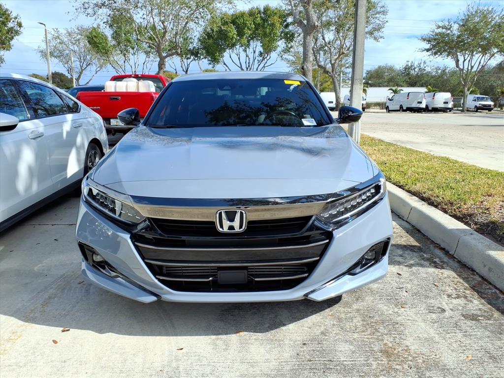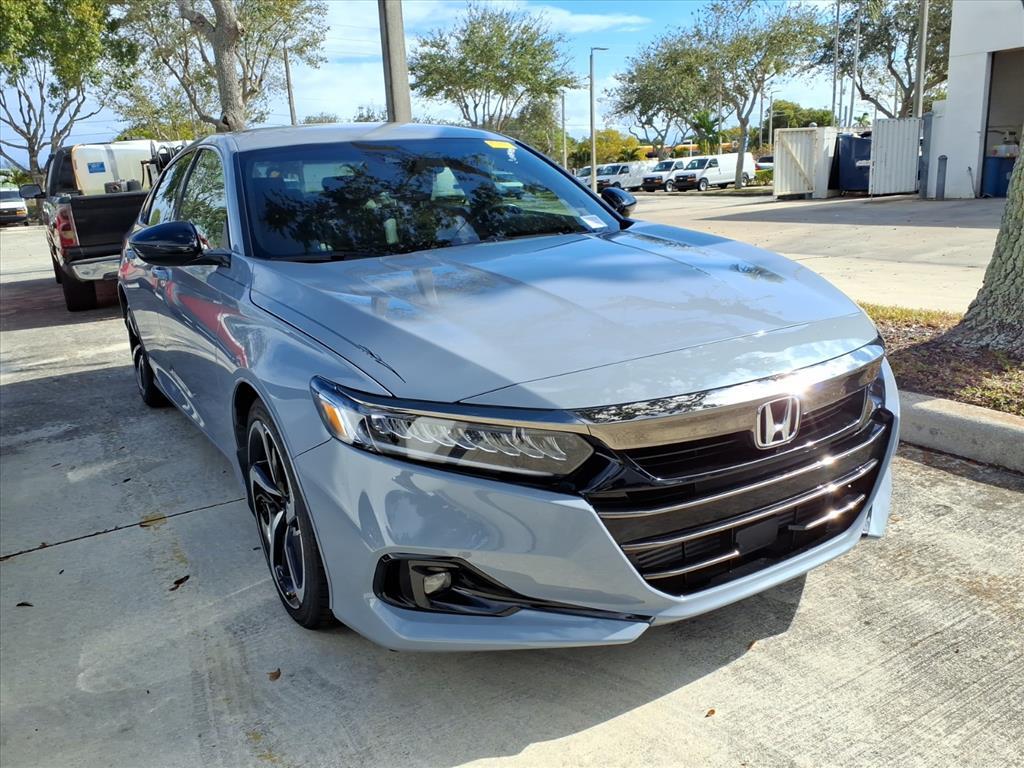 Recent Arrival! Certified. 2022 Honda Accord Sport Gray Carfax Accident Free, Local Trade, Bluetooth, Backup Camera. Odometer is 22320 miles below market average! 29/35 City/Highway MPG HondaTrue Certified Details: * Vehicle History * 182 Point Inspection * Vehicles purchased within New Vehicle Limited Warranty period: extends New Vehicle Limited Warranty to 5 years*/60,000 miles*. Honda Care Roadside Assistance for 2 year/100,000 miles (whichever occurs first). Up to two complimentary oil changes within the first year of ownership. SiriusXM 90-Day Trial. * Powertrain Limited Warranty: 84 Month/100,000 Mile (whichever comes first) from original in-service date * Warranty Deductible: $0 * Roadside Assistance * Limited Warranty: 24 Month/100,000 Mile (whichever comes first) after new car warranty expires or from certified purchase date * Transferable Warranty 4-Wheel Disc Brakes, 8 Speakers, ABS brakes, Adaptive Cruise Control: Adaptive Cruise Control (ACC) with Low-Speed Follow, Air Conditioning, Alloy wheels, AM/FM radio, Apple CarPlay/Android Auto, Auto High-beam Headlights, Automatic temperature control, Brake assist, Bumpers: body-color, Delay-off headlights, Driver door bin, Driver vanity mirror, Dual front impact airbags, Dual front side impact airbags, Electronic Stability Control, Emergency communication system: HondaLink, Exterior Parking Camera Rear, Fabric w/Synthetic Leather Seat Trim, Forward collision: Collision Mitigation Braking System (CMBS) FCW mitigation, Four wheel independent suspension, Front anti-roll bar, Front Bucket Seats, Front Center Armrest, Front dual zone A/C, Front fog lights, Front reading lights, Fully automatic headlights, Illuminated entry, Knee airbag, Lane Departure Warning System, Leather Shift Knob, Leather steering wheel, Low tire pressure warning, Occupant sensing airbag, Outside temperature display, Overhead airbag, Overhead console, Panic alarm, Passenger door bin, Passenger vanity mirror, Power door mirrors, Power driver seat, Power steering, Power windows, Radio data system, Radio: 180-Watt AM/FM Audio System, Rear anti-roll bar, Rear seat center armrest, Rear window defroster, Remote keyless entry, Security system, Speed control, Speed-sensing steering, Speed-Sensitive Wipers, Split folding rear seat, Spoiler, Steering wheel mounted audio controls, Tachometer, Telescoping steering wheel, Tilt steering wheel, Traction control, Trip computer, Variably intermittent wipers, and Wheels: 19Machine-Finish