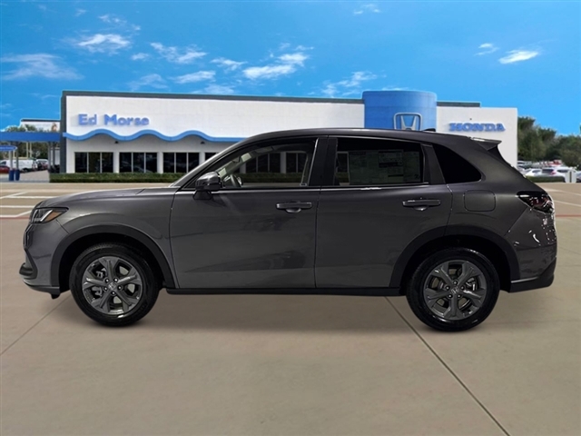 Modern Steel Metallic 2026 Honda HR-V LX 26/32 City/Highway MPG 4 Speakers, 4-Wheel Disc Brakes, ABS brakes, Adaptive Cruise Control: Adaptive Cruise Control (ACC) with Low-Speed Follow, Air Conditioning, Alloy wheels, AM/FM radio, Apple CarPlay/Android Auto, Auto High-beam Headlights, Automatic temperature control, Brake assist, Bumpers: body-color, Cloth Seat Trim, Compass, Delay-off headlights, Driver door bin, Driver vanity mirror, Dual front impact airbags, Dual front side impact airbags, Electronic Stability Control, Exterior Parking Camera Rear, Four wheel independent suspension, Front anti-roll bar, Front Bucket Seats, Front Center Armrest, Front reading lights, Fully automatic headlights, Illuminated entry, Knee airbag, Low tire pressure warning, Occupant sensing airbag, Outside temperature display, Overhead airbag, Panic alarm, Passenger door bin, Passenger vanity mirror, Power door mirrors, Power steering, Power windows, Radio data system, Radio: 180-Watt Audio System with 4 Speakers, Rear anti-roll bar, Rear reading lights, Rear side impact airbag, Rear window defroster, Rear window wiper, Remote keyless entry, Security system, Speed control, Speed-sensing steering, Split folding rear seat, Spoiler, Steering wheel mounted audio controls, Tachometer, Telescoping steering wheel, Tilt steering wheel, Traction control, Trip computer, Variably intermittent wipers, and Wheels: 17Pewter Gray Alloy.
