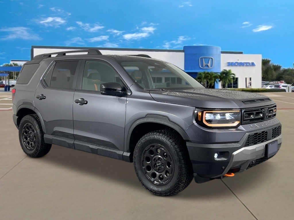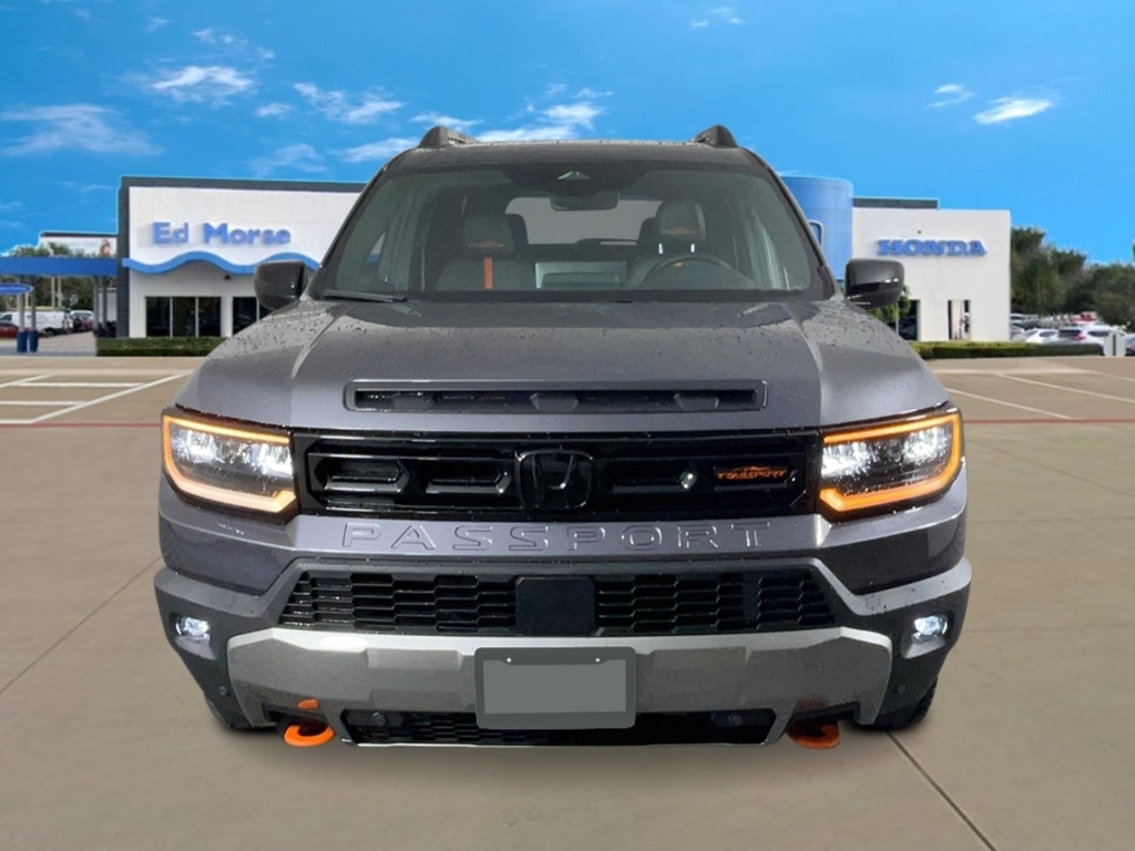 Modern Steel Metallic 2026 Honda Passport TrailSport 18/23 City/Highway MPG 4-Wheel Disc Brakes, 9 Speakers, ABS brakes, Adaptive Cruise Control: Adaptive Cruise Control (ACC) with Low-Speed Follow, Air Conditioning, Alloy wheels, Apple CarPlay/Android Auto, Auto High-beam Headlights, Auto-dimming Rear-View mirror, Automatic temperature control, Blind Spot Information (BSI) System warning, Brake assist, Compass, Delay-off headlights, Driver door bin, Driver vanity mirror, Drivers Seat Mounted Armrest, Dual front impact airbags, Dual front side impact airbags, Durable Leatherette & Cloth Seat Trim, Electronic Stability Control, Emergency communication system: HondaLink, Exterior Parking Camera Rear, Four wheel independent suspension, Front anti-roll bar, Front Bucket Seats, Front Center Armrest, Front dual zone A/C, Front fog lights, Front reading lights, Fully automatic headlights, Heated door mirrors, Heated Front Bucket Seats, Heated front seats, HVAC memory, Illuminated entry, Knee airbag, Lane departure: Lane Keeping Assist System (LKAS) active, Leather steering wheel, Low tire pressure warning, Memory seat, Navigation system: Google Maps, Occupant sensing airbag, Outside temperature display, Overhead airbag, Overhead console, Panic alarm, Passenger door bin, Passenger seat mounted armrest, Passenger vanity mirror, Power door mirrors, Power driver seat, Power Liftgate, Power moonroof, Power passenger seat, Power steering, Power windows, Radio data system, Radio: Audio System w/9 Speakers, Rear air conditioning, Rear anti-roll bar, Rear reading lights, Rear seat center armrest, Rear window defroster, Rear window wiper, Remote keyless entry, Security system, Speed control, Speed-sensing steering, Split folding rear seat, Spoiler, Steering wheel mounted audio controls, Tachometer, Telescoping steering wheel, Tilt steering wheel, Traction control, Trip computer, Turn signal indicator mirrors, Variably intermittent wipers, and Wheels: 18Matte Shark Gray Alloy.