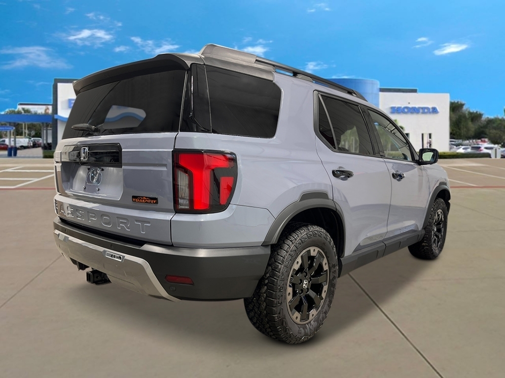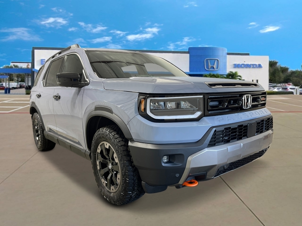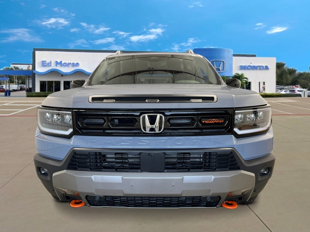 Sonic Gray Pearl 2026 Honda Passport TrailSport Elite 18/23 City/Highway MPG 12 Speakers, 4-Wheel Disc Brakes, ABS brakes, Adaptive Cruise Control: Adaptive Cruise Control (ACC) with Low-Speed Follow, Air Conditioning, Alloy wheels, Apple CarPlay/Android Auto, Auto High-beam Headlights, Auto-dimming door mirrors, Auto-dimming Rear-View mirror, Automatic temperature control, Blind Spot Information (BSI) System warning, Brake assist, Compass, Delay-off headlights, Driver door bin, Driver vanity mirror, Drivers Seat Mounted Armrest, Dual front impact airbags, Dual front side impact airbags, Electronic Stability Control, Emergency communication system: HondaLink, Exterior Parking Camera Rear, Four wheel independent suspension, Front anti-roll bar, Front Bucket Seats, Front Center Armrest, Front dual zone A/C, Front fog lights, Front reading lights, Fully automatic headlights, Heated & Ventilated Front Bucket Seats, Heated door mirrors, Heated front seats, Heated rear seats, Heated steering wheel, HVAC memory, Illuminated entry, Knee airbag, Lane departure: Lane Keeping Assist System (LKAS) active, Leather steering wheel, Low tire pressure warning, Memory seat, Navigation system: Google Maps, Occupant sensing airbag, Outside temperature display, Overhead airbag, Overhead console, Panic alarm, Passenger door bin, Passenger seat mounted armrest, Passenger vanity mirror, Perforated Leather Seat Trim, Power door mirrors, Power driver seat, Power Liftgate, Power moonroof, Power passenger seat, Power steering, Power windows, Radio data system, Radio: Bose Premium Sound System w/12 Speakers, Rain sensing wipers, Rear air conditioning, Rear anti-roll bar, Rear reading lights, Rear seat center armrest, Rear window defroster, Rear window wiper, Remote keyless entry, Security system, Speed control, Speed-sensing steering, Split folding rear seat, Spoiler, Steering wheel mounted audio controls, Tachometer, Telescoping steering wheel, Tilt steering wheel, Traction control, Trip computer, Turn signal indicator mirrors, Variably intermittent wipers, Ventilated front seats, and Wheels: 18Berlina Black Machine Face Alloy.