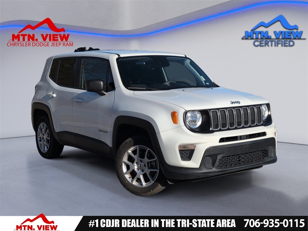 * MUST FINANCE W/ DEALER FOR ADVERTISED PRICE *, * BLUETOOTH *, * SATELLITE RADIO *, * MP3- USB / I-POD READY *, * USB ADAPTER *, * INCLUDES WARRANTY *, * FOUR WHEEL DRIVE 4WD *, Renegade Latitude, Mtn View Certified Certified, 4D Sport Utility, 1.3L I4, 9-Speed 948TE Automatic, 4WD, Alpine White Clearcoat, Black Cloth, 17x 7.0Aluminum Wheels, 3.734 Final Drive Ratio, 4-Wheel Disc Brakes, 6 Speakers, ABS brakes, Air Conditioning, Alloy wheels, AM/FM radio: SiriusXM, Anti-whiplash front head restraints, Apple CarPlay/Android Auto, Automatic temperature control, Brake assist, Cloth Bucket Seats, Compass, Delay-off headlights, Driver door bin, Driver vanity mirror, Dual front impact airbags, Dual front side impact airbags, Electronic Stability Control, Emergency communication system: SiriusXM Guardian, Four wheel independent suspension, Front anti-roll bar, Front Bucket Seats, Front Center Armrest, Front dual zone A/C, Front reading lights, Heated door mirrors, Illuminated entry, Knee airbag, Low tire pressure warning, Navigation System, Normal Duty Suspension, Occupant sensing airbag, Outside temperature display, Overhead airbag, ParkView Rear Back-Up Camera, Passenger door bin, Passenger vanity mirror, Power door mirrors, Power steering, Power windows, Quick Order Package 22B, Radio data system, Radio: Uconnect 4C Nav w/8.4Display, Rear anti-roll bar, Rear window defroster, Rear window wiper, Remote keyless entry, Roof rack: rails only, Security system, Speed control, Split folding rear seat, Spoiler, Steering wheel mounted audio controls, Tachometer, Telescoping steering wheel, Tilt steering wheel, Traction control, Trip computer, Variably intermittent wipers, Voltmeter, Renegade Latitude, 4D Sport Utility, 1.3L I4, 9-Speed 948TE Automatic, 4WD, Alpine White Clearcoat, Black Cloth. CARFAX One-Owner. Clean CARFAX. Alpine White Clearcoat 2023 Jeep Renegade Latitude 4D Sport Utility 1.3L I4 9-Speed 948TE Automatic 4WD Certification Program Details: 6 Months / 6,000 Mile Powertrain Warranty. Contact dealer for additional details. Certified. No Charge Protection Coverage included on any vehicle under 120,000 miles not still covered by factory warranty. Call us today to schedule a hassle-free test drive! We are located at: 6276 Alabama Highway., Ringgold, GA 30736.