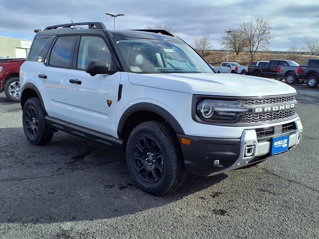 Good to go, our 2025 Ford Bronco Sport Badlands 4X4 with the Tech Pack can push right past the pavement in Oxford White! Powered by a TurboCharged 2.0 Liter EcoBoost 4 Cylinder delivering 250hp to an 8 Speed Automatic transmission with a seven-mode terrain system. A HOSS 2.0 off-road suspension, twin-clutch 4X4, and Trail Control advance capability further, and this Four Wheel Drive SUV scores nearly 26mpg on the highway. Our Bronco Sport breaks free from boring design with LED lighting, fog lamps, steel skid plates, a steel-plated front bumper, alloy wheels, recovery hooks, and a black roof with roof rails. Our Badlands cabin is comfortably equipped for rugged conditions with heated leather power front seats, a heated-wrapped steering wheel, dual-zone automatic climate control, keyless access, pushbutton ignition, and clever cargo space. Intelligent technology is also standard, including a 13.2-inch touchscreen, a 12.3-inch driver display, WiFi compatibility, voice control, Apple CarPlay/Android Auto, Bluetooth, wireless charging, and our Tech Pack for connected navigation compatibility, Bang & Olufsen audio, and HD Radio. Fords Co-Pilot360 tech is on board for smart safety, protecting owners with blind-spot monitoring, adaptive cruise control, automatic braking, a rearview camera, lane-keeping assistance, rear cross-traffic alert, and more. Our Bronco Sport Badlands embodies a bold spirit of adventure! Save this Page and Call for Availability. We Know You Will Enjoy Your Test Drive Towards Ownership! Ford Motor Credit WAC. Price includes: $2000 - Retail Customer Cash. Exp. 03/31/2026 $2000 - SUV Spike Retail Bonus Cash. Exp. 02/16/2026 $1000 trade in incentive on 2018 or newer vehicles with less than 110,000 miles to be traded in ends 6-30-2026