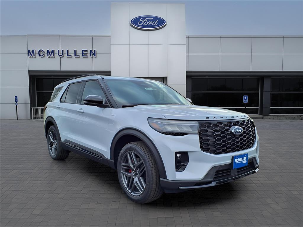 Sporty yet practical, our 2026 Ford Explorer ST-Line 4WD with the ST-Line Street Package in Space White Metallic brings spirited style and everyday confidence to family adventures. Motivated by a TurboCharged 2.3 Liter EcoBoost 4 Cylinder providing 300hp to a 10 Speed Automatic transmission enhanced by multiple drive modes. This Four Wheel Drive SUV also rides on a responsive suspension, scores nearly 27mpg on the highway, and shows off performance-inspired styling. Our Explorers exterior highlights include distinctive design cues, such as the Street Packs performance brakes, red-painted calipers, black roof rails, black skid plate elements, 21-inch wheels, a power liftgate, and LED lighting featuring fog lamps and signature lighting. Its a look for owners who love adventure! Heated ActiveX front and second-row seats enhance the comfort of our ST-Line cabin, which also features a convenient third-row bench, a heated leather steering wheel, tri-zone automatic temperature control, and a Bang & Olufsen sound system, the audio experts finest creation. Enjoy intelligent infotainment from a 13.2-inch touchscreen and a 12.3-inch driver display, Apple CarPlay/Android Auto, WiFi compatibility, Bluetooth, and voice control. Ford supports safer travel with features such as front/rear automatic braking, blind-spot monitoring, lane-keeping assistance, a rearview camera, rear parking sensors, trailer sway control, tire pressure monitoring, and more. Our Explorer ST-Line is a capable towing machine that can help your family navigate through the toughest spots. Save this Page and Call for Availability. We Know You Will Enjoy Your Test Drive Towards Ownership! Ford Motor Credit WAC. Price includes: $1000 - Retail Customer Cash. Exp. 01/05/2026 $500 - Bonus Customer Cash. Exp. 01/05/2026 $1000 trade in incentive on 2015 or newer vehicles with less than 125,000 miles to be traded in ends 12/31-2025