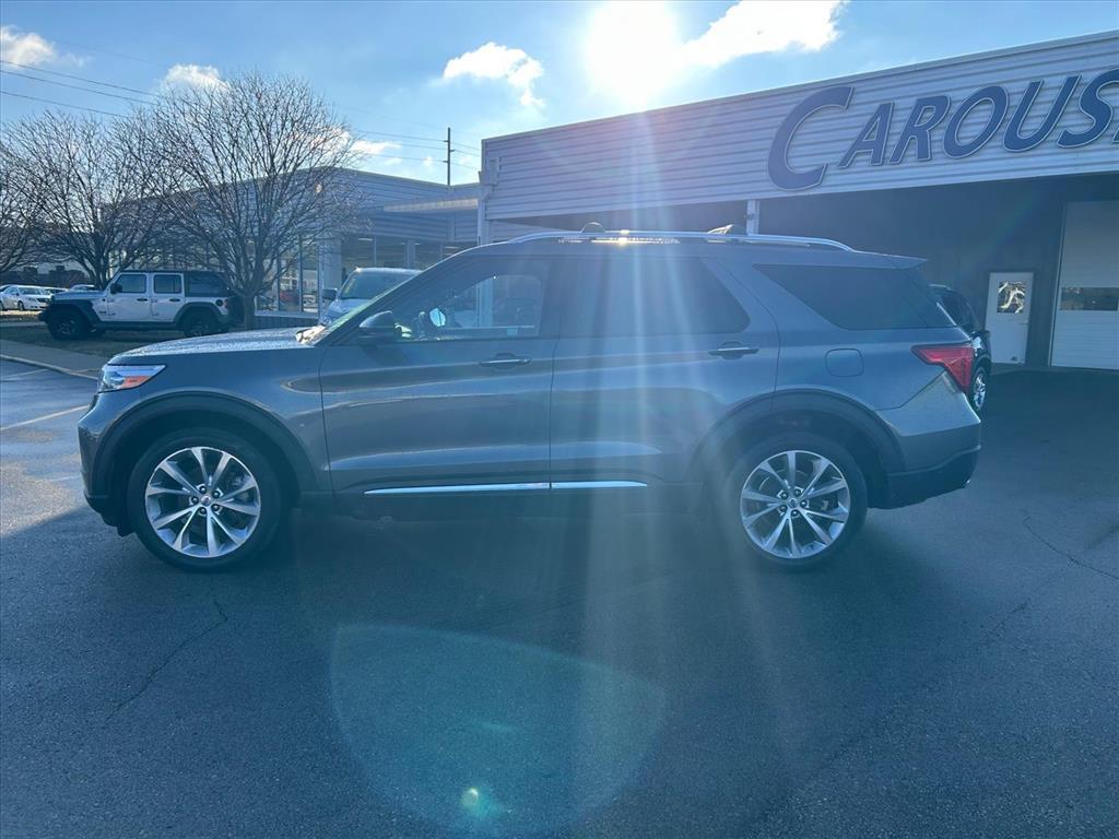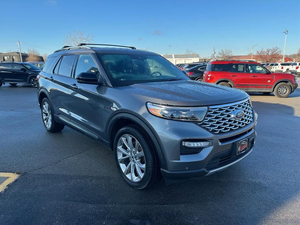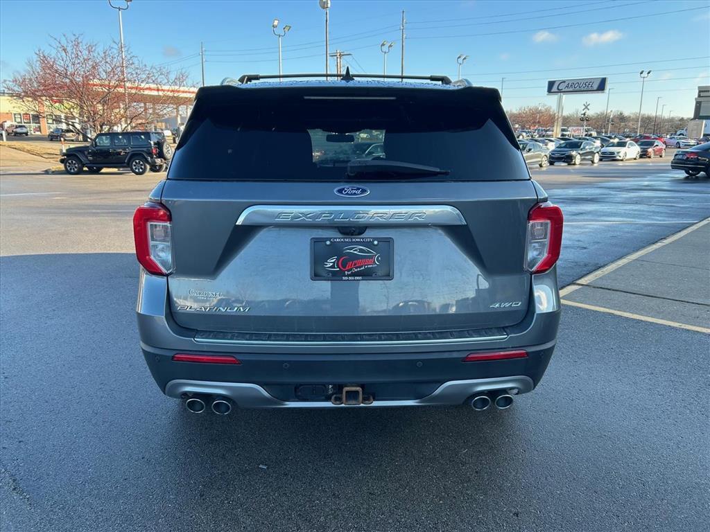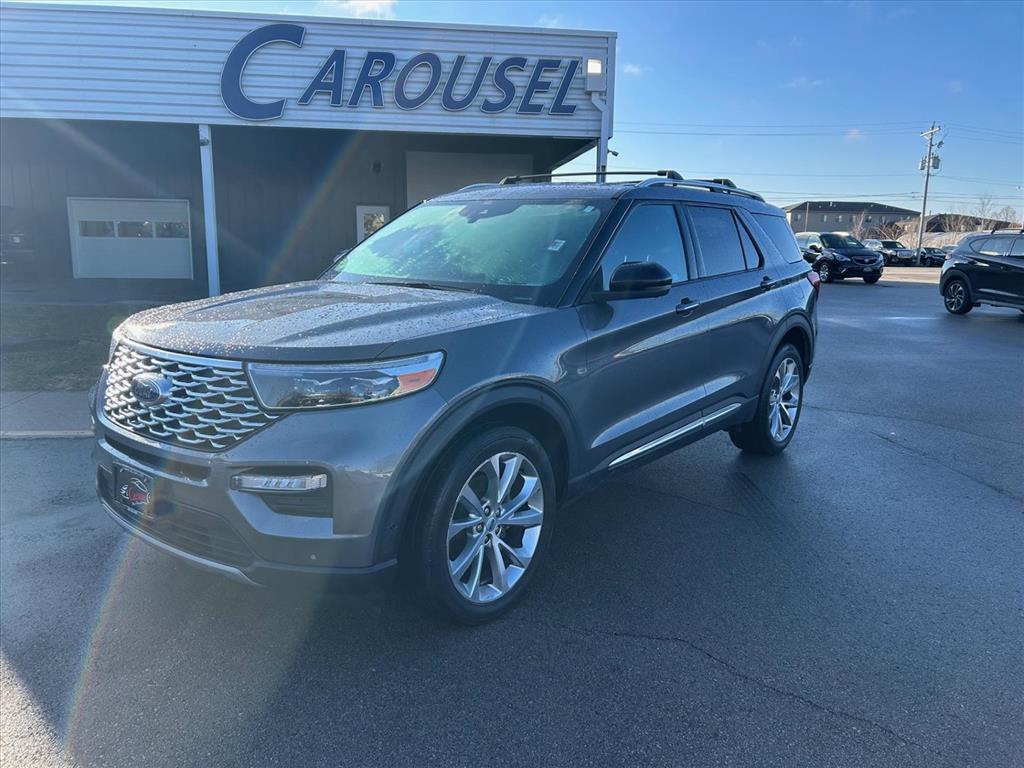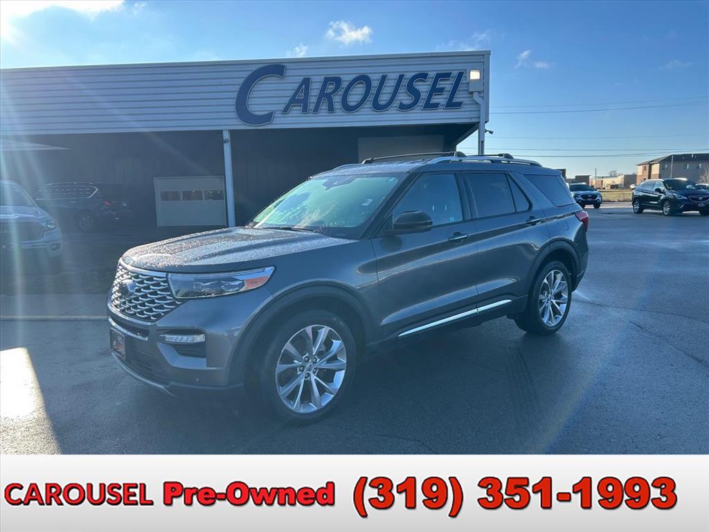 Experience luxury and capability in this 2021 Ford Explorer Platinuma premium SUV loaded with advanced technology and safety features that set it apart from the competition. Standout Features:This Platinum trim comes equipped with a powerful EcoBoost 3L Twin Turbo V-6 engine delivering 365HP, paired with Intelligent 4WD for confident handling in any condition. Enjoy premium comfort with ventilated and heated leather seats (front and rear), a heated steering wheel, and wireless device charging. The integrated navigation system with voice activation and SYNC 3 with Apple CarPlay/Android Auto keeps you connected, while the FordPass Connect 4G mobile hotspot ensures everyone stays online. Safety You Can Trust:Rated 5 Stars overall by NHTSA, this Explorer features Ford Co-Pilot360 Assist with Lane Centering, Pre-Collision Assist with Pedestrian Detection, Reverse Brake Assist, and Evasive Steering Assist. Adaptive Cruise Control with Stop-and-Go makes highway driving effortless. Confidence in Your Purchase:With detailed inspections and transparent vehicle history, you can buy with peace of mind. Why Carousel PreOwnedCarousel PreOwned is part of the trusted Carousel Auto Group in Iowa City, serving over 30,000 satisfied customers. We guarantee exceptional value on every vehicle and deliver the best deal on your next purchase. Come see why Eastern Iowa chooses Carousel PreOwned!