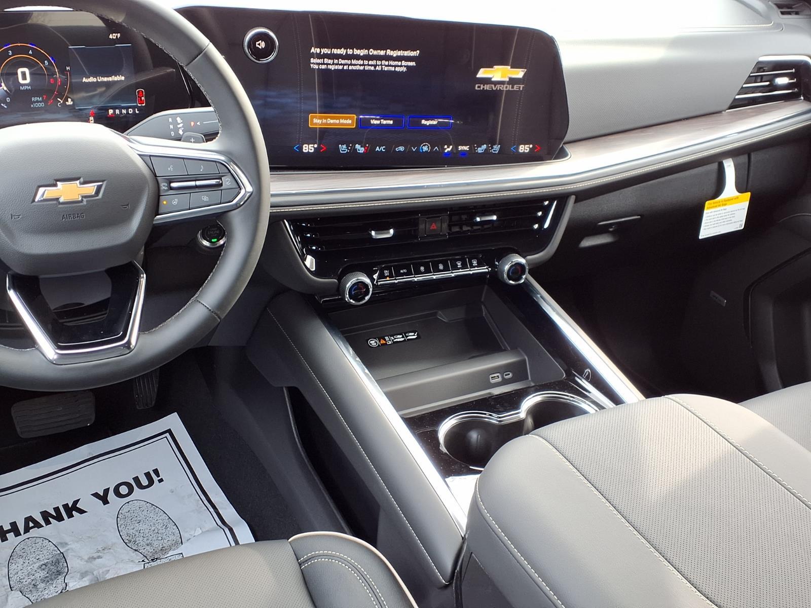 2026 Chevrolet Tahoe Premier 4WD, Leather, 10 Speakers, 1st and 2nd Row Color-Keyed Carpeted Floor Mats, 20 x 9 Polished Aluminum Wheels, 3-Spoke Wrapped Steering Wheel, 3.23 Rear Axle Ratio, 3rd Row 60/40 Power-Folding Split-Bench Seat, 3rd row seats: split-bench, 4-Way Power Driver Lumbar Seat Adjuster, 4-Way Power Front Passenger Lumbar Seat Adjuster, 4-Wheel Disc Brakes, 8-Way Power Driver Seat Adjuster, 8-Way Power Front Passenger Seat Adjuster, ABS brakes, Adaptive suspension, Air Conditioning, Alloy wheels, AM/FM radio: SiriusXM with 360L, Apple CarPlay/Android Auto, Auto High-beam Headlights, Auto-dimming door mirrors, Auto-Dimming Inside Rear-View Mirror, Auto-dimming Rear-View mirror, Auto-leveling suspension, Automatic temperature control, Bose 10-Speaker Centerpoint Surround Audio System Feature, Brake assist, Bright Front and Rear Door Sill Plates, Bumpers: body-color, Chrome Door Handles with Body-Color Strip, Chrome Mirror Caps, Color-Keyed Carpeting Floor Covering, Compass, Delay-off headlights, Driver and Front Passenger Heated and Ventilated Seats, Driver door bin, Driver vanity mirror, Dual Exhaust System, Dual front impact airbags, Dual front side impact airbags, Electronic Stability Control, Emergency communication system: OnStar and Chevrolet connected services capable, Exterior Parking Camera Rear, Floor Console, Four wheel independent suspension, Front anti-roll bar, Front Bucket Seats, Front Center Armrest, Front dual zone A/C, Front fog lights, Front LED Fog Lamps, Front reading lights, Frontal Driver and Outboard Passenger Airbags, Fully automatic headlights, Garage door transmitter, Heated 2nd Row Outboard Seats, Heated door mirrors, Heated Driver and Front Passenger Seats, Heated front seats, Heated rear seats, Heated Steering Wheel, Heated steering wheel, Illuminated entry, Interior Camera, Key Card, LED Headlamps with LED Daytime Running Lamps, LED Tail Lamps, Low tire pressure warning, Magnetic Ride Control Suspension, Memory seat, Memory Settings, Navigation system: Google built-in compatibility (select service plan required, terms and limitations apply), Occupant sensing airbag, Outside Heated Power-Adjustable Mirrors, Outside temperature display, Overhead airbag, Overhead console, Panic alarm, Passenger door bin, Passenger vanity mirror, Perforated Leather Seat Trim, Power door mirrors, Power driver seat, Power Liftgate, Power passenger seat, Power Release 2nd Row Bucket Seats, Power steering, Power Tilt and Telesco