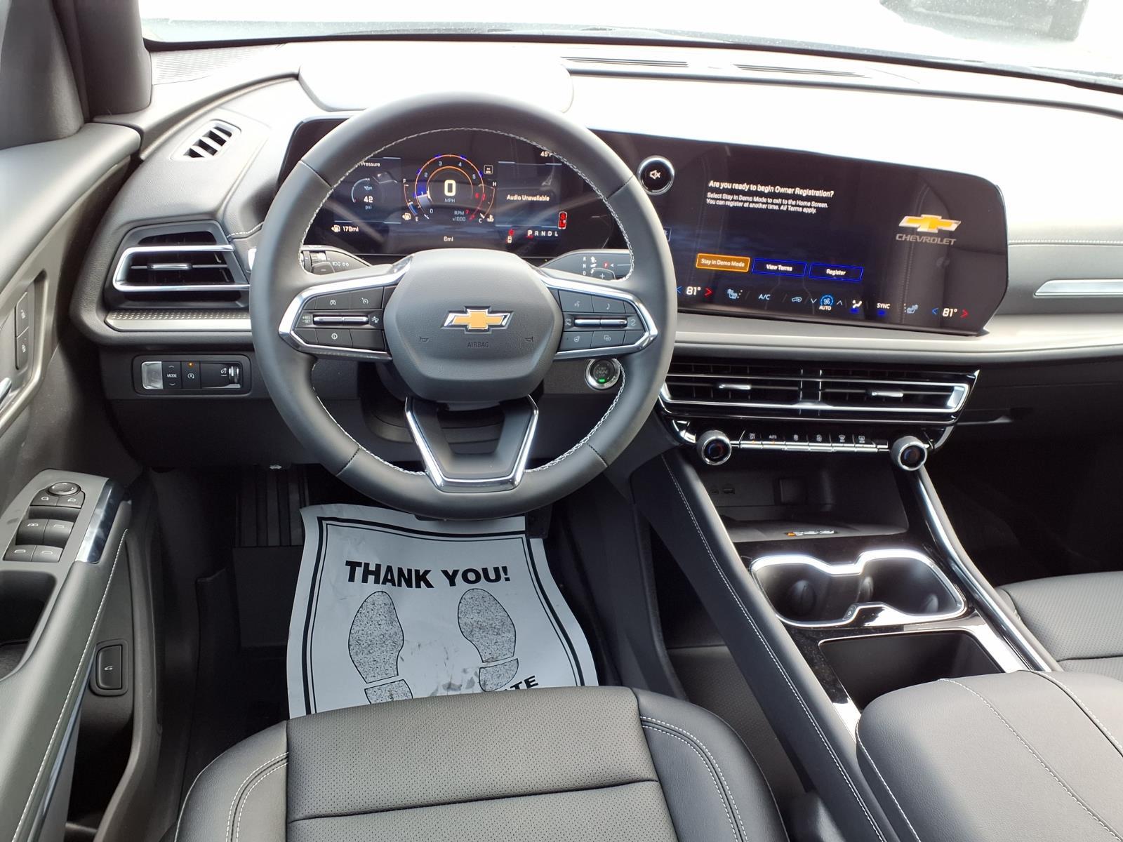 2026 Chevrolet Traverse LT 1st and 2nd Row All-Weather Floor Liners, 22 High Gloss Black Aluminum Wheels, 3rd Row All-Weather Floor Liner, 3rd row seats: split-bench, 4-Way Manual Front Passenger Seat Adjuster, 4-Wheel Disc Brakes, 6 Speakers, 6-Speaker Audio System Feature, 8-Way Power Driver Seat Adjuster, ABS brakes, Air Conditioning, Alloy wheels, AM/FM radio: SiriusXM with 360L, Apple CarPlay/Android Auto, Auto High-beam Headlights, Automatic temperature control, Black Lug Nut & Wheel Lock Kit, Brake assist, Bumpers: body-color, Child-Seat-Sensing Airbag, Compass, Delay-off headlights, Driver Confidence Package, Driver door bin, Driver vanity mirror, Dual front impact airbags, Dual front side impact airbags, Electronic Stability Control, Emergency communication system: OnStar, Floor Liner Package, Four wheel independent suspension, Front anti-roll bar, Front Bucket Seats, Front Center Armrest, Front dual zone A/C, Front reading lights, Fully automatic headlights, HD Surround Vision, Heated door mirrors, Heated Driver and Front Passenger Seats, Heated front seats, Heated steering wheel, Illuminated entry, Integrated Cargo Liner, Key Card, Low tire pressure warning, Navigation System, Occupant sensing airbag, Outside temperature display, Overhead airbag, Overhead console, Panic alarm, Passenger door bin, Passenger vanity mirror, Power door mirrors, Power driver seat, Power Liftgate, Power Outlet, Power steering, Power windows, Premium Cloth Seat Trim, Radio data system, Radio: : Audio System w/17.7 Diagonal Display, Rear air conditioning, Rear anti-roll bar, Rear Camera Mirror, Rear Pedestrian Alert, Rear reading lights, Rear window defroster, Rear window wiper, Remote keyless entry, Security system, SiriusXM with 360L Trial Subscription, Special Ride and Handling Suspension, Speed control, Speed-sensing steering, Spoiler, Steering wheel mounted audio controls, Tachometer, Telescoping steering wheel, Tilt steering wheel, Traction control, Traffic Sign Recognition, Trip computer, Turn signal indicator mirrors, Variably intermittent wipers, Voltmeter, Wheels: 18 Grazen Metallic Machined-Face Aluminum, Wheels: 22 Transit. 20/26 City/Highway MPG