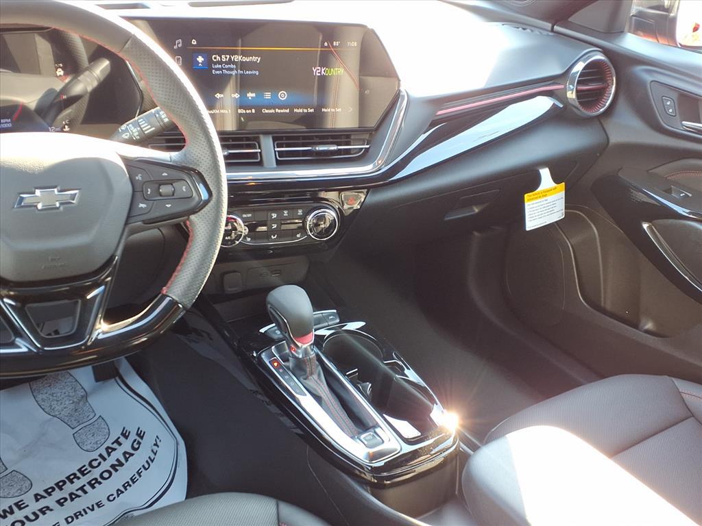 2026 Chevrolet Trax 2RS 2-Way Adjustable Front Head Restraints, 2-Way Power Driver Lumbar Seat Adjuster, 3.50 Final Drive Axle Ratio, 4-Way Manual Front Passenger Seat Adjuster, 4-Wheel Disc Brakes, 6 Speakers, 6-Speaker Audio System Feature, 8-Way Power Driver Seat Adjuster, ABS brakes, Air Conditioning, Alloy wheels, AM/FM radio: SiriusXM, Auto High-beam Headlights, Automatic temperature control, Brake assist, Bumpers: body-color, Compass, Delay-off headlights, Driver door bin, Driver vanity mirror, Dual front impact airbags, Dual front side impact airbags, Electronic Stability Control, Emergency communication system: OnStar One Essentials, Evotex Seat Trim, Exterior Parking Camera Rear, Front anti-roll bar, Front Bucket Seats, Front Center Armrest, Front reading lights, Front wheel independent suspension, Fully automatic headlights, Heated door mirrors, Heated Driver and Front Passenger Seats, Heated front seats, Heated steering wheel, Illuminated entry, Leather steering wheel, Low tire pressure warning, Occupant sensing airbag, Outside temperature display, Overhead airbag, Overhead console, Panic alarm, Passenger door bin, Passenger vanity mirror, Power door mirrors, Power driver seat, Power steering, Power windows, Premium audio system: Chevrolet Infotainment 3, Radio data system, Radio: AM/FM Stereo Audio System, Rear window defroster, Rear window wiper, Remote keyless entry, Security system, SiriusXM Trial Subscription, Speed control, Split folding rear seat, Spoiler, Sport steering wheel, Steering wheel mounted audio controls, Tachometer, Telescoping steering wheel, Tilt steering wheel, Traction control, Trip computer, Variably intermittent wipers, Wheels: 19 Black-Painted Machined Aluminum, Wireless Apple CarPlay/Wireless Android Auto. 28/32 City/Highway MPG
