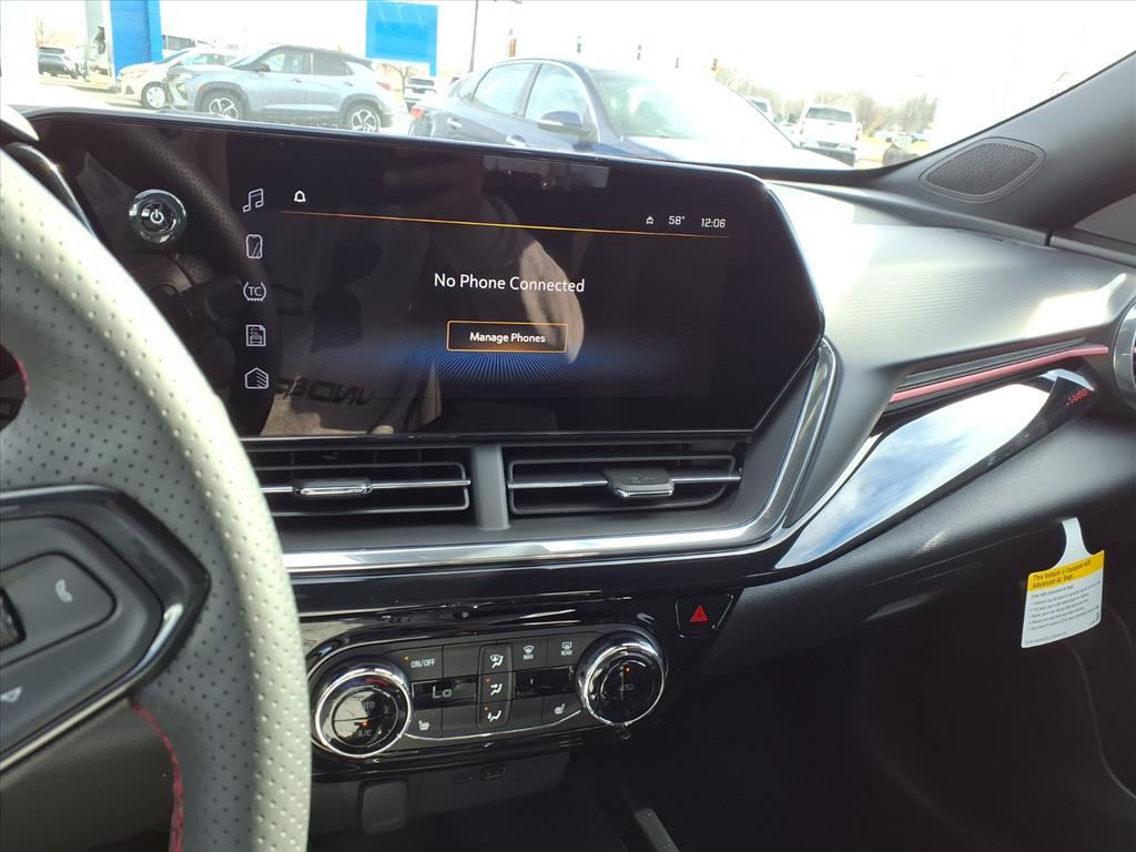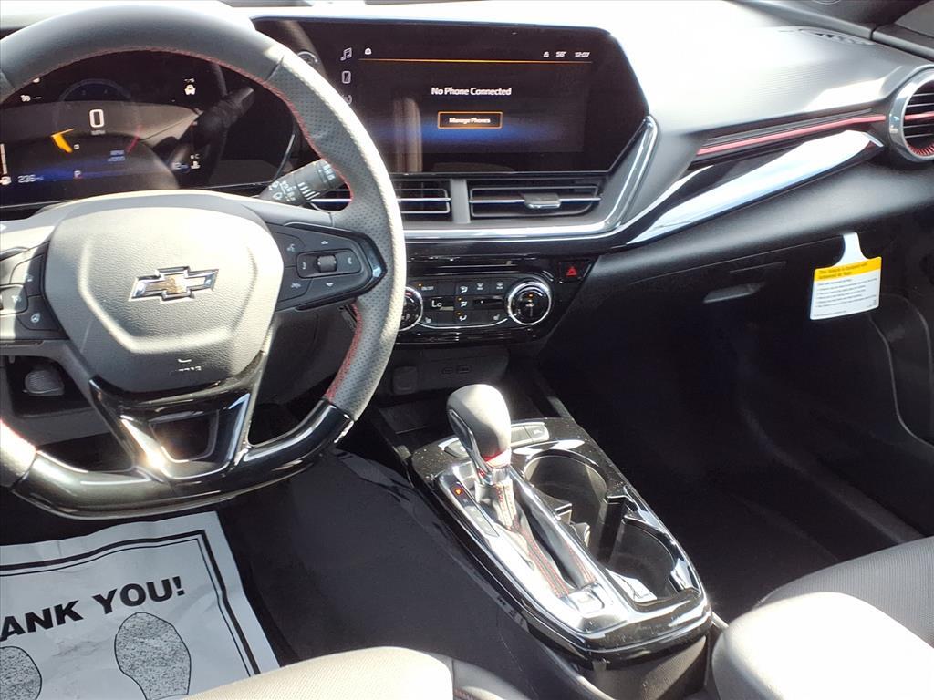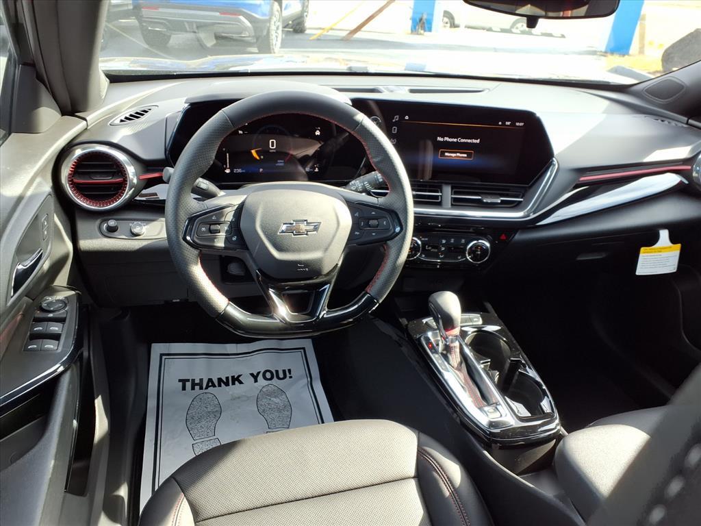 2026 Chevrolet Trax 2RS 2-Way Adjustable Front Head Restraints, 2-Way Power Driver Lumbar Seat Adjuster, 3.50 Final Drive Axle Ratio, 4-Way Manual Front Passenger Seat Adjuster, 4-Wheel Disc Brakes, 6 Speakers, 6-Speaker Audio System Feature, 8-Way Power Driver Seat Adjuster, ABS brakes, Air Conditioning, Alloy wheels, AM/FM radio: SiriusXM, Auto High-beam Headlights, Automatic temperature control, Brake assist, Bumpers: body-color, Compass, Delay-off headlights, Driver door bin, Driver vanity mirror, Dual front impact airbags, Dual front side impact airbags, Electronic Stability Control, Emergency communication system: OnStar One Essentials, Evotex Seat Trim, Exterior Parking Camera Rear, Front anti-roll bar, Front Bucket Seats, Front Center Armrest, Front reading lights, Front wheel independent suspension, Fully automatic headlights, Heated door mirrors, Heated Driver and Front Passenger Seats, Heated front seats, Heated steering wheel, Illuminated entry, Leather steering wheel, Low tire pressure warning, Occupant sensing airbag, Outside temperature display, Overhead airbag, Overhead console, Panic alarm, Passenger door bin, Passenger vanity mirror, Power door mirrors, Power driver seat, Power steering, Power windows, Premium audio system: Chevrolet Infotainment 3, Radio data system, Radio: AM/FM Stereo Audio System, Rear window defroster, Rear window wiper, Remote keyless entry, Security system, SiriusXM Trial Subscription, Speed control, Split folding rear seat, Spoiler, Sport steering wheel, Steering wheel mounted audio controls, Tachometer, Telescoping steering wheel, Tilt steering wheel, Traction control, Trip computer, Variably intermittent wipers, Wheels: 19 Black-Painted Machined Aluminum, Wireless Apple CarPlay/Wireless Android Auto. 28/32 City/Highway MPG