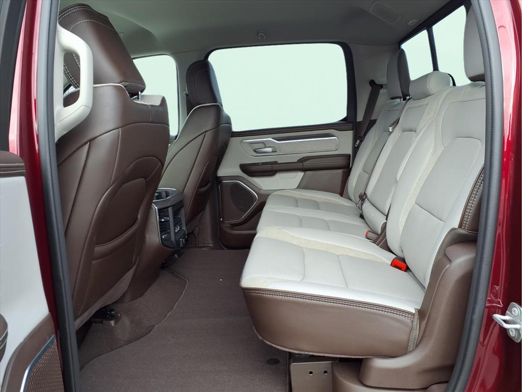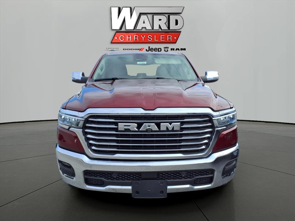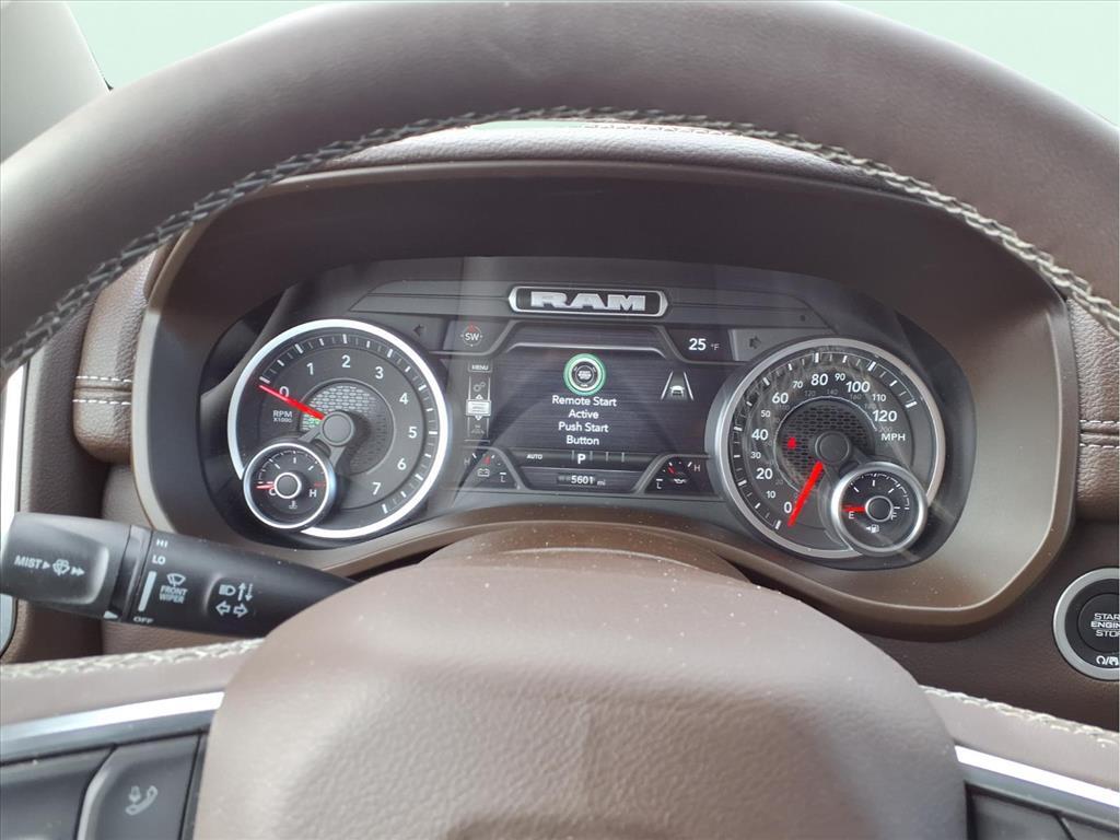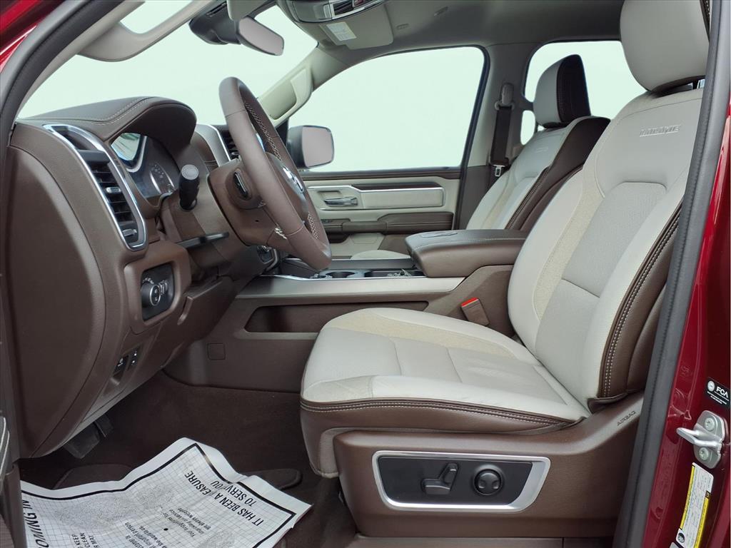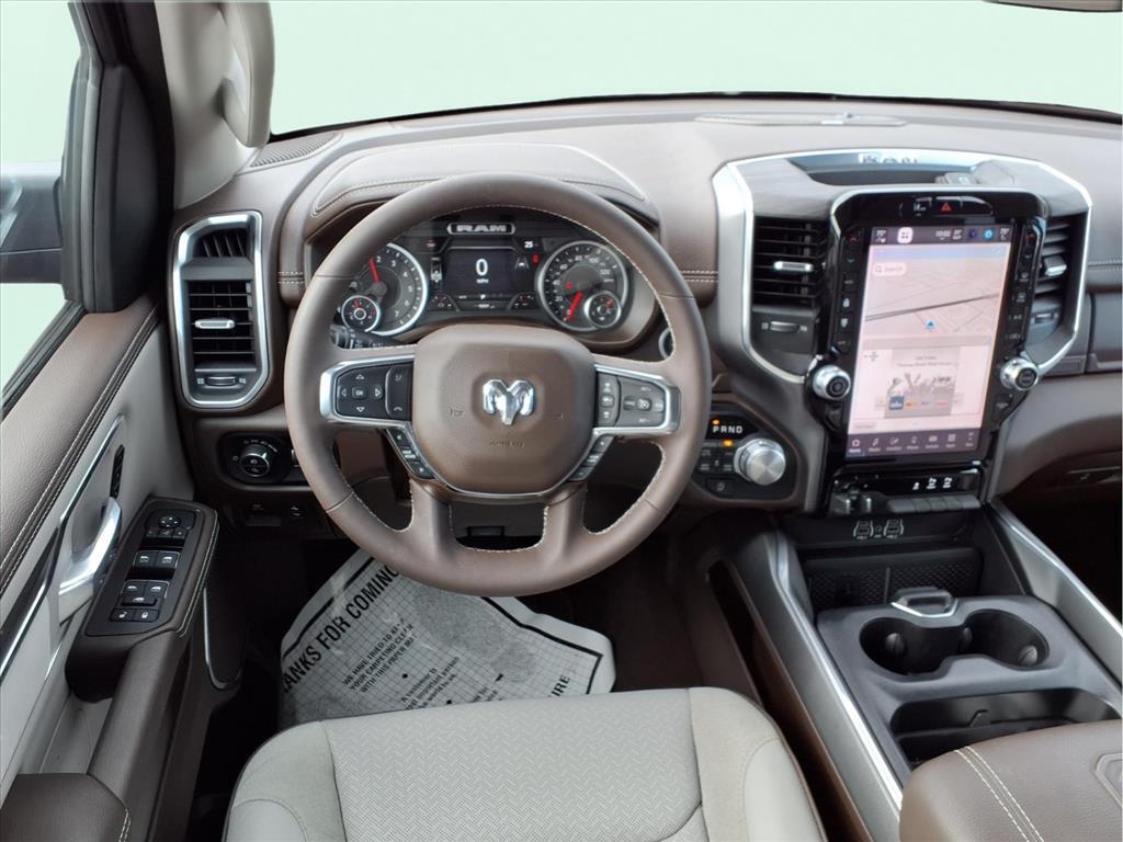 10 Speakers, 3 Rear Seat Head Restraints, 3.55 Rear Axle Ratio, 4 Way Front Headrests, 4-Wheel Disc Brakes, 4G LTE Wi-Fi Hot Spot, ABS brakes, Air Conditioning, Alloy wheels, AM/FM radio: SiriusXM with 360L, Anti-Spin Differential Rear Axle, Apple CarPlay, Apple CarPlay/Android Auto, Audio memory, Auto High-beam Headlights, Auto Power-Folding Mirrors, Auto-dimming door mirrors, Auto-Dimming Exterior Driver Mirror, Auto-dimming Rear-View mirror, Automatic temperature control, Brake assist, Bumpers: chrome, Chrome Exterior Mirrors, Compass, Connected Travel & Traffic Services, Connectivity - US/Canada, Convex Wide-Angle Exterior Mirror Insert, Delay-off headlights, Driver door bin, Driver Seat Memory, Driver vanity mirror, Dual front impact airbags, Dual front side impact airbags, Electronic Stability Control, Exterior Mirrors Courtesy Lamps, Exterior Mirrors w/Heating Element, Exterior Mirrors w/Memory, Exterior Mirrors w/Supplemental Signals, Front anti-roll bar, Front Center Armrest w/Storage, Front dual zone A/C, Front fog lights, Front License Plate Bracket, Front reading lights, Front Seat Back Map Pockets, Front wheel independent suspension, Fully automatic headlights, Garage door transmitter, Google Android Auto, GPS Antenna Input, GPS Navigation, HD Radio, Heated door mirrors, Heated Front Seats, Heated front seats, Heated rear seats, Heated Steering Wheel, Heated steering wheel, Illuminated entry, Integrated Voice Command w/Bluetooth, Laramie Level 1 Equipment Group, Leather steering wheel, Leather Trim 40/20/40 Bench Seat, Low tire pressure warning, Memory seat, Navigation System, Occupant sensing airbag, Outside temperature display, Overhead airbag, Overhead console, Panic alarm, ParkView Rear Back-Up Camera, Passenger door bin, Passenger vanity mirror, Power 2-Way Driver Lumbar Adjust, Power 2-Way Passenger Lumbar Adjust, Power Adjust 8-Way Front Passenger Seat, Power door mirrors, Power driver seat, Power passenger seat, Power steering, Power windows, Quick Order Package 21H Laramie, Radio data system, Radio: Uconnect 5 Nav w/12.0Display, Rain Sensitive Windshield Wipers, RAM Grille Badge - Chrome, Rear anti-roll bar, Rear reading lights, Rear seat center armrest, Rear step bumper, Remote keyless entry, Remote Tailgate Release, Security system, SiriusXM w/360L, Speed control, Split folding rear seat, Steering wheel mounted audio controls, Tachometer, Telescoping steering wheel, Tilt steering wheel, Traction control, Trailer Brake Control, Tri