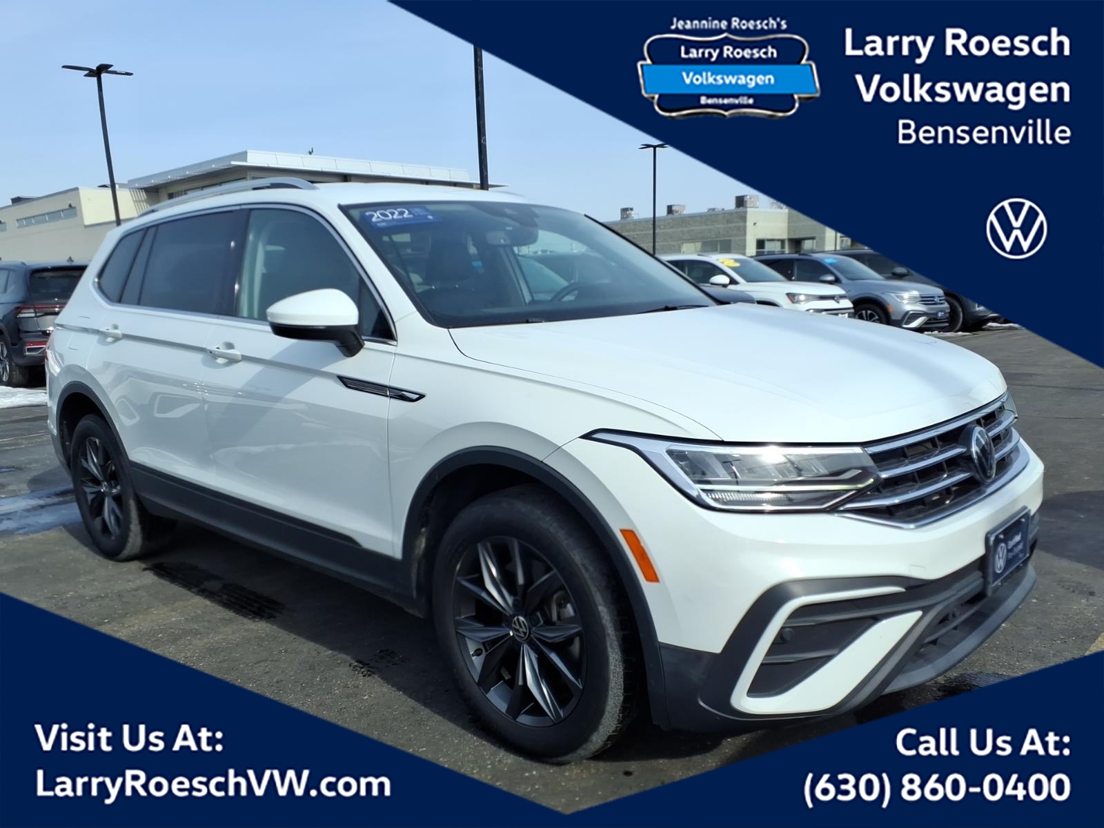 2022 Volkswagen Tiguan 2.0T SE, Pure White Recent Arrival! CARFAX ONE OWNER!, REMAINDER OF FULL FACTORY WARRANTY!, BLUETOOTH!, USB PORT!, ALL WHEEL DRIVE!, HEATED SEATS!, REARVIEW CAMERA!, PUSH-BUTTON START!. Odometer is 4989 miles below market average! 22/29 City/Highway MPG For more information, please visit Larryroeschvw.com. Serving the communities of Addison, Bensenville, Countryside, Downers Grove, Elmhurst, Hillside, Hinsdale, Lombard, Oak Brook, Oak Park, Schaumburg, Villa Park, Westchester, Western Springs for over 85 years!