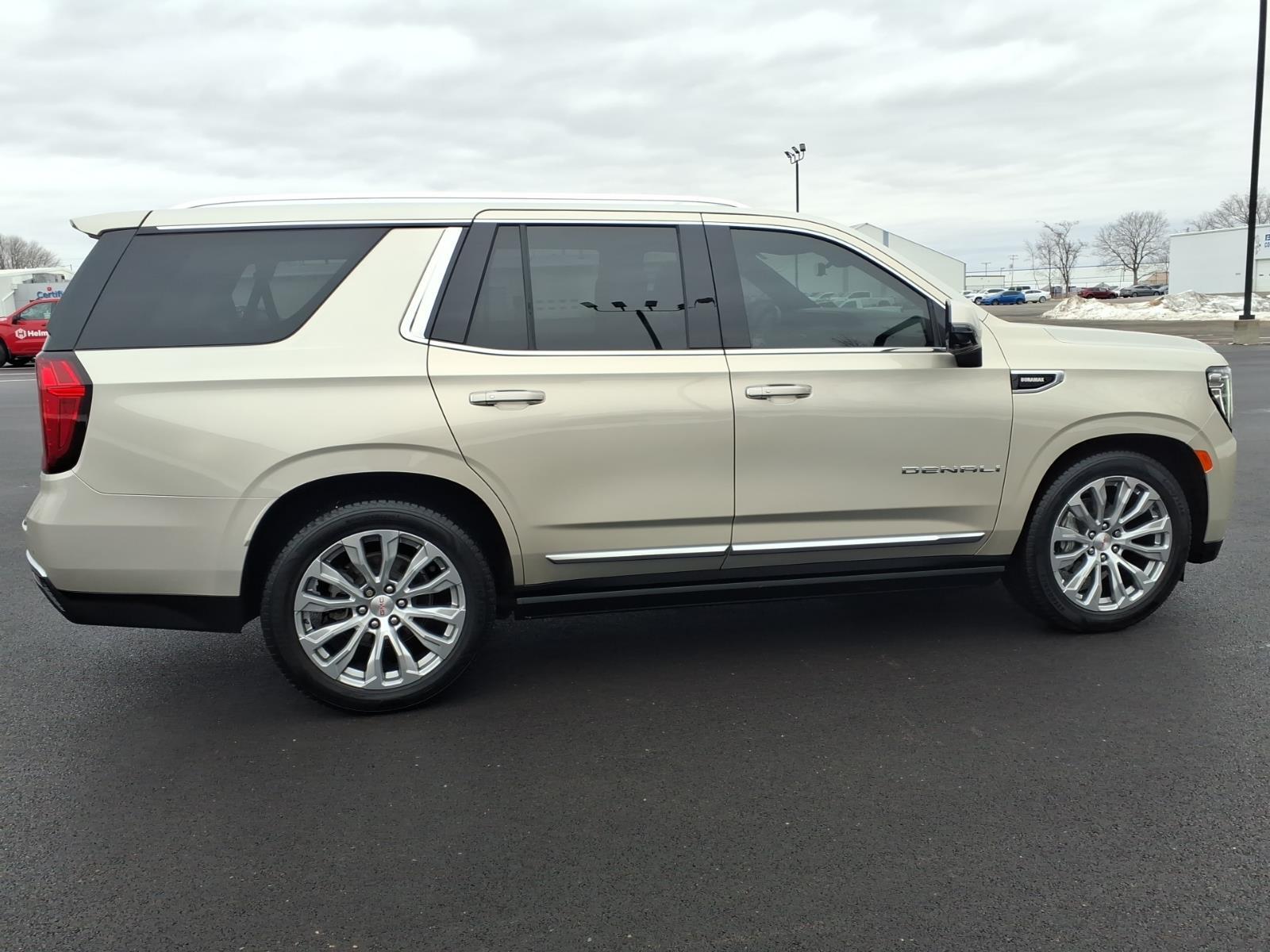 This 2022 GMC Yukon Denali is a vehicle that is sure to turn heads. Boasting a 3.0 liter 6 cylinder turbo diesel engine, this SUV 4x4 has driven 93,816 miles and is sure to turn heads on the road. The pearl beige metallic exterior is accented by a brownstone/jet black interior, and the 4 out of 5 star crash test rating ensures that you and your passengers are safe while on the road. Features such as a touch screen display, Bluetooth audio connection, blind spot sensor, hill start assist, part time with on demand four wheel drive, navigation system with voice recognition, and leather-trimmed seats make this car an ideal choice for anyone looking for luxury and convenience. Contact Details: Bocker Auto Group, 801 E South Street, Freeport, IL, 61032, hlampros@bockerautogroup.com, 8152352121.