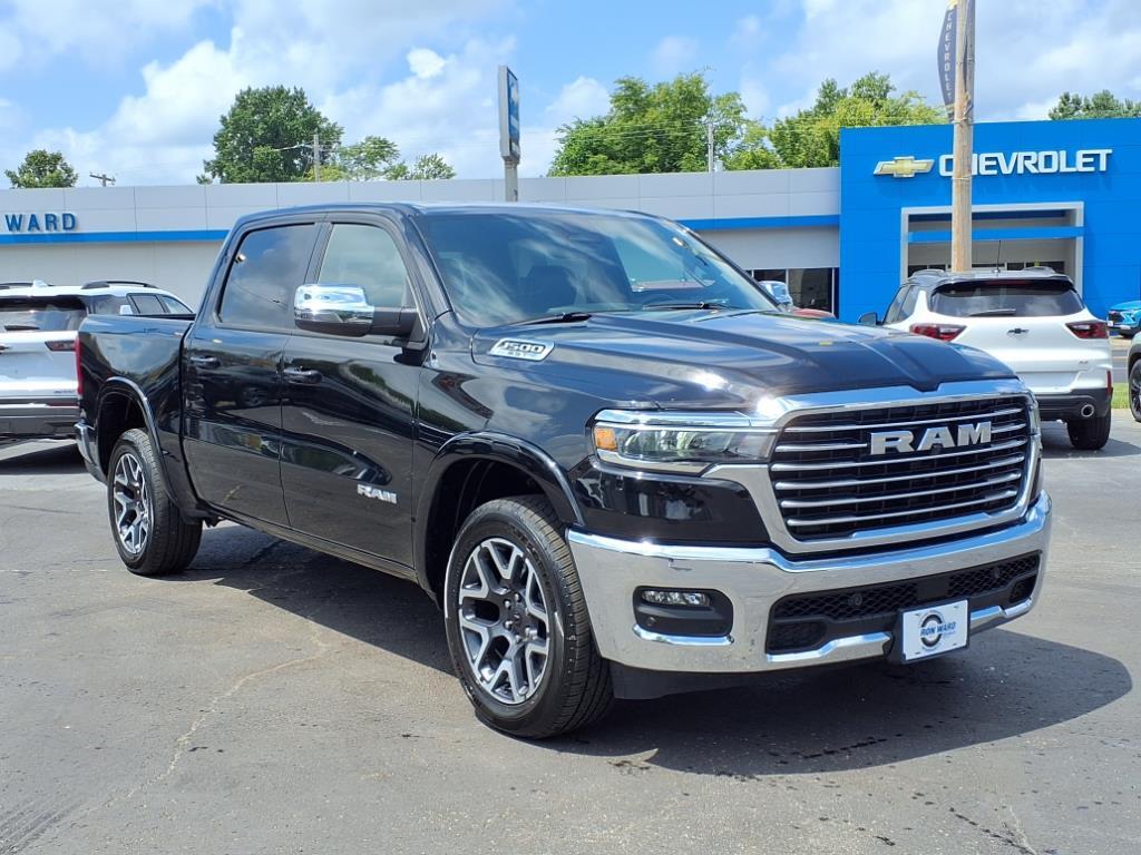 Ron Ward Chevrolet internet sales team prioritizes your satisfaction above all else.Well go the extra mile to ensure you drive home happy. Obtain the necessary pre-approval prior to acquiring the vehicle: Get the YESby Pre-qualifying for financing with our easy credit application in-store or online. We welcome all credit and offer straightforward, easy auto financing options. Our network of lenders accommodates all credit types, with the capacity to approve financing for up to 100% of our clients. Recent Arrival! Clean CARFAX. CARFAX One-Owner. 17/24 City/Highway MPG Diamond Black Crystal Pearlcoat 2025 Ram 1500 Laramie 4WD 8-Speed Automatic 3.0L I6 1500 Laramie, 4D Crew Cab, 3.0L I6, 8-Speed Automatic, 4WD, Diamond Black Crystal Pearlcoat, Black Leather, 4G LTE Wi-Fi Hot Spot, Apple CarPlay, Apple CarPlay/Android Auto, Chrome Exterior Mirrors, Connected Travel & Traffic Services, Driver Seat Memory, Dual front impact airbags, Dual front side impact airbags, Electronic Stability Control, Exterior Mirrors w/Heating Element, Exterior Mirrors w/Supplemental Signals, Front fog lights, Front reading lights, Fully automatic headlights, Garage door transmitter, Heated Front Seats, Heated rear seats, Illuminated entry, Laramie Level 1 Equipment Group, Leather Trim 40/20/40 Bench Seat, Navigation System, ParkView Rear Back-Up Camera, Power driver seat, Power passenger seat, Power steering, Power windows, Quick Order Package 21H Laramie, Rain Sensitive Windshield Wipers, Remote keyless entry, Remote Tailgate Release, Steering wheel mounted audio controls, Telescoping steering wheel, Traction control, Ventilated Front Seats.