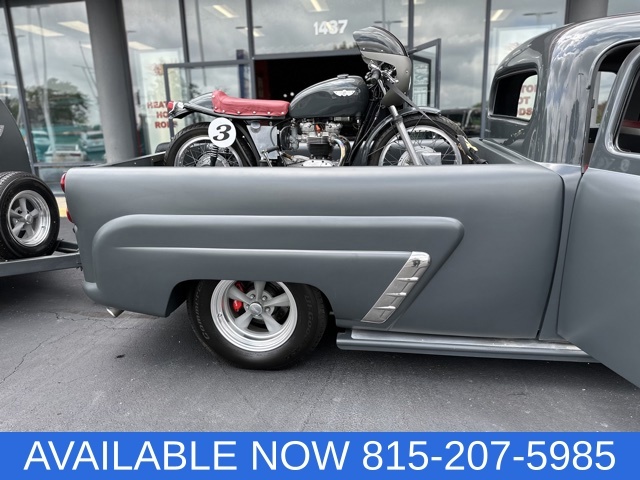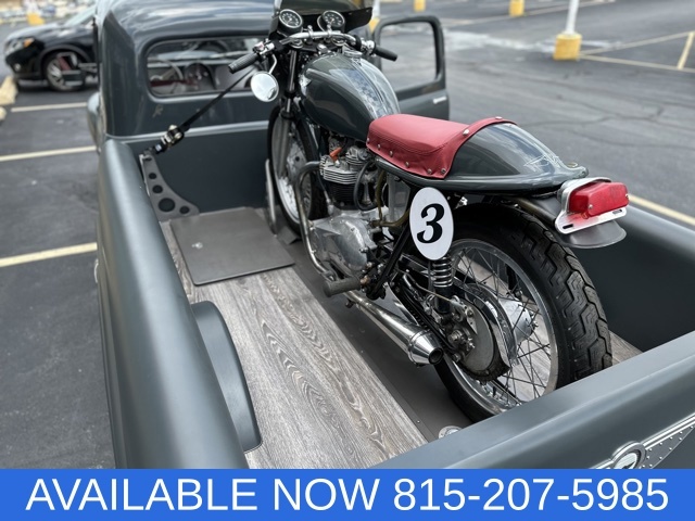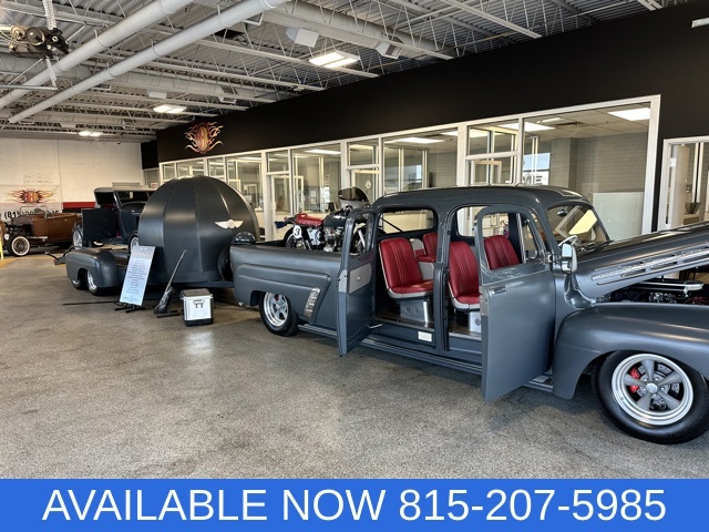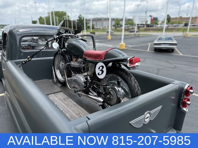 WOW!!! Check out this Custom built 1951Ford F-3 pickup, This truck had a 3 door conversion done in 1951 sent by Ford to Grant body and equipment , The current owner had a vision to create an amazing package that was designed to look like it was on its way to the salt flats for a day of racing fun! The truck is completely custom from front to back and top to bottom,The cab of the truck had the roof chopped, Several body mods including custom door handles and drip rails, Ram air intake custom made with electric actuator that lifts cowl vent to force air into custom air cleaner.The bed of the truck is a complete custom masterpiece with countless fabrication. the inside of the bed was designed to carry the 1969 Triumph TT special motorcycle. The body was channeled over the custom frame with a Roadster Shop independent front suspension with power rack and pinion steering and a Roadster Shop rear 4 link set up with 9 inch rear axle assembly and coil overs on the front and air ride on the rear. truck has a built pro-formance 420 horsepower 351w with forged flat top pistons,1/2 inch lift in the cam polished crank ,Eagle I-beam connecting rods with dart aluminum heads and many more upgrades, also has Edelbrock performance intake and Edelbrock carb. MSD pro billet distributor and a March performance pulley set up. Truck has a new 4l60-E transmission. the interior is a complete one off hand fabricated dash and center council with a steel inner roof that was fabricated and painted to match, the interior is absolutely beautiful and the attention to detail is of the charts!! the truck will keep you nice and cool with a vintage air set up. the 1969 triumph was built to reflect the old salt TT Racer it is also custom painted to match the truck. the car trailer is again completely custom and hand fabricated to match the truck and is a work of art by itself. it was built to carry,Yep you guessed it another completely custom vehicle a 1929 Custom ROADSTER!! All steel hand built one off body with so much fabrication and timeless detail. The interior was made to match the colors of the truck and the dash was custom designed and looks amazing. custom built chassis Pete & Jakes front and rear suspension, pro built Flathead v-8 built by Flathead city with aluminum heads,2x2 intake and new Stromburg 97 carbs & MSD electronic ignition , 4L60 automatic transmission with a Winters Newstalgia quick change rear differential. also has SO-CAL Buick style finned drum with scoops disc brake kit and Johns rear finned drum kit.this all in one package has less than 200 miles on it and is ready to be shown at all the big shows! you need to see this package in person to really appreciate the countless hours of fabrication and the unbelievable attention to detail that went in to making this one of a kind show stopper! give us a call (815)207-5985 ask for Tom Heaton.