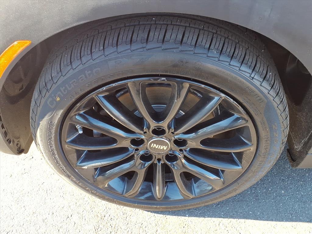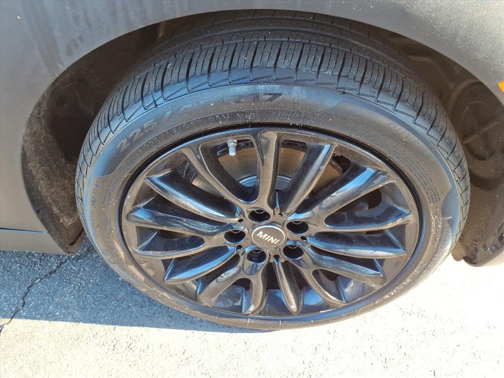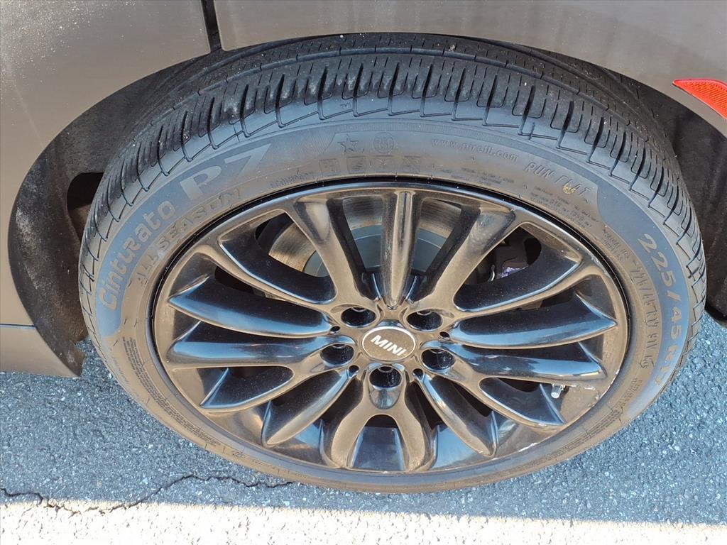 Dual front knee airbags, four-wheel disc brakes with anti-lock, electronic brake force distribution, standby brakes, cornering brake control, automatic self-drying brakes, hill assist, dynamic traction control with electronic differential lock control, dynamic stability control, side-impact door beams, central locking system, engine immobilizer, comfort keyless entry, daytime driving lights, automatic headlights, Bluetooth hands free phone system, and tire pressure monitoring system. Cooper S adds run-flat tires.