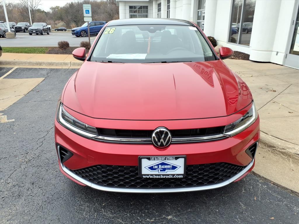 **2026 Volkswagen Jetta 1.5T SE** Kings Red Metallic, 4D Sedan **Highlights** Recent Arrival Shop From Home Free Delivery Within 250 Miles Easy Financing Fully Serviced **Performance & Efficiency** 1.5L I-4 DI DOHC Turbocharged Engine Front-Wheel Drive Automatic Transmission **Interior & Comfort** Heated Front Seats Power Driver Seat Panoramic Power Moonroof Dual-Zone Automatic Climate Control Leather Steering Wheel Leather Shift Knob Split-Folding Rear Seat **Technology & Connectivity** MIB3 Composition Media with 8Touchscreen SiriusXM with 360L Steering Wheel Mounted Audio Controls Auto-Dimming Rearview Mirror with HomeLink VW Car-Net Safe & Secure (5-Year Emergency Communication System) **Safety & Driver Assistance** Active Blind Spot Monitor Rearview Camera Electronic Stability Control Traction Control Dual Front, Side, and Overhead Airbags Low Tire Pressure Warning Brake Assist **Exterior Features** Heated Power Mirrors Rain-Sensing Wipers Fully Automatic Headlights Heavy Duty Trunk Liner with VW CarGo Blocks **Dealer Info** Lou Bachrodt Auto Mall your locally-owned Chevy, Buick, GMC, BMW, and VW dealer. Family-owned in Rockford, Illinois since 1953, offering certified service, genuine parts & accessories, and a five-star buying experience. Proudly serving Rockford, Loves Park, Machesney Park, Belvidere, Beloit, Rochelle, Harvard, Freeport, Sycamore, Cherry Valley, and Chicago.