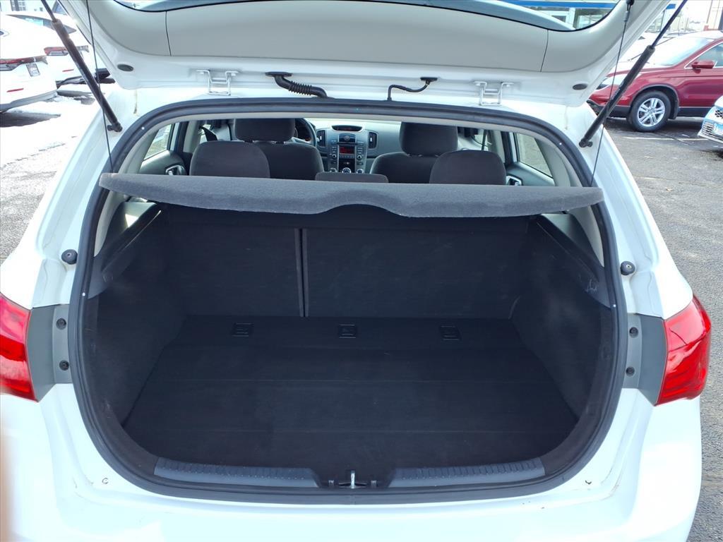 Inside the passenger cabin, the Forte5 features premium materials and soft touch points. Large, easy-to-read white-on-black gauges nestle deeply into the instrument cluster. Chrome accents around the HVAC controls and optional push-button start, along with carbon fiber-like textures on the dash and seats, add a sporty touch. A grippy leather-wrapped steering wheel and shift knob are further evidence of the Forte5's performance aspirations. Class-exclusive available features such as front and rear heated outboard seats, an air-cooled driver’s seat and driver-selectable electric steering further set the Forte5 apart from its competition.