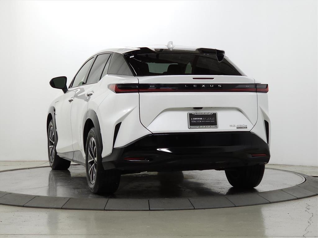 **ADDITIONAL 2 YEARS/UNLIMITED MILE COMPREHENSIVE WARRANTY AND COMPLIMENTARY MAINTENANCE**, **Lexus Safety System Plus**, ** Lane Departure Warning, ** Blind Spot Monitor, ** Alloy Wheels / Premium Wheels, ** Apple CarPlay/Android Auto, ** Navigation System, ** Backup Camera, ** Bluetooth, Hands-Free, ** Cooled Seats, ** Heated Seats, ** Heated Steering Wheel, ** Memory Seat, ** Sunroof/Moonroof, ** Adaptive Cruise Control, ** Automatic Emergency Braking, ** Brake Assist, ** Cruise Control, ** HomeLink, ** Keyless Entry, ** Keyless Start, ** Premium Sound System / Premium Audio, ** Portable Audio Connection, ** Satellite Radio, ** Security System, ** Stability Control, ** Steering Wheel Controls, ** USB Port.Certified. CARFAX One-Owner. Clean CARFAX. Odometer is 7162 miles below market average! Eminent White Pearl 2023 Lexus RZ 450e Premium 4D Sport Utility Electric Motor Single-Speed Automatic AWDL/Certified Details: * Warranty Deductible: $0 * Roadside Assistance * Vehicle History * Limited Warranty: 24 Month/Unlimited Mile * CERTIFIED WARRANTY: Comprehensive Inspection, Unlimited-mileage warranty up to 6 years. Balance of new car warranty (4 Year/50K Miles) plus 2 Year/Unlimited-mileage L/Certified warranty. SERVICE MAINTENANCE: Complimentary Maintenance Plan covering the first four basic factory-scheduled maintenance services for 2 years or 20,000 milesShopping at Woodfield Lexus is car buying the way it should be: fun, informative and fair. Here are our promises:* Transparent Pricing!* Pressure Free, Efficient, Friendly, and Helpful Sales Staff!* One Massive Inventory For One Stop Shopping!* No Hassle Sell or Trade Any Car* Pressure Free Road TestWoodfield Lexus - Come See For Yourself Today!
