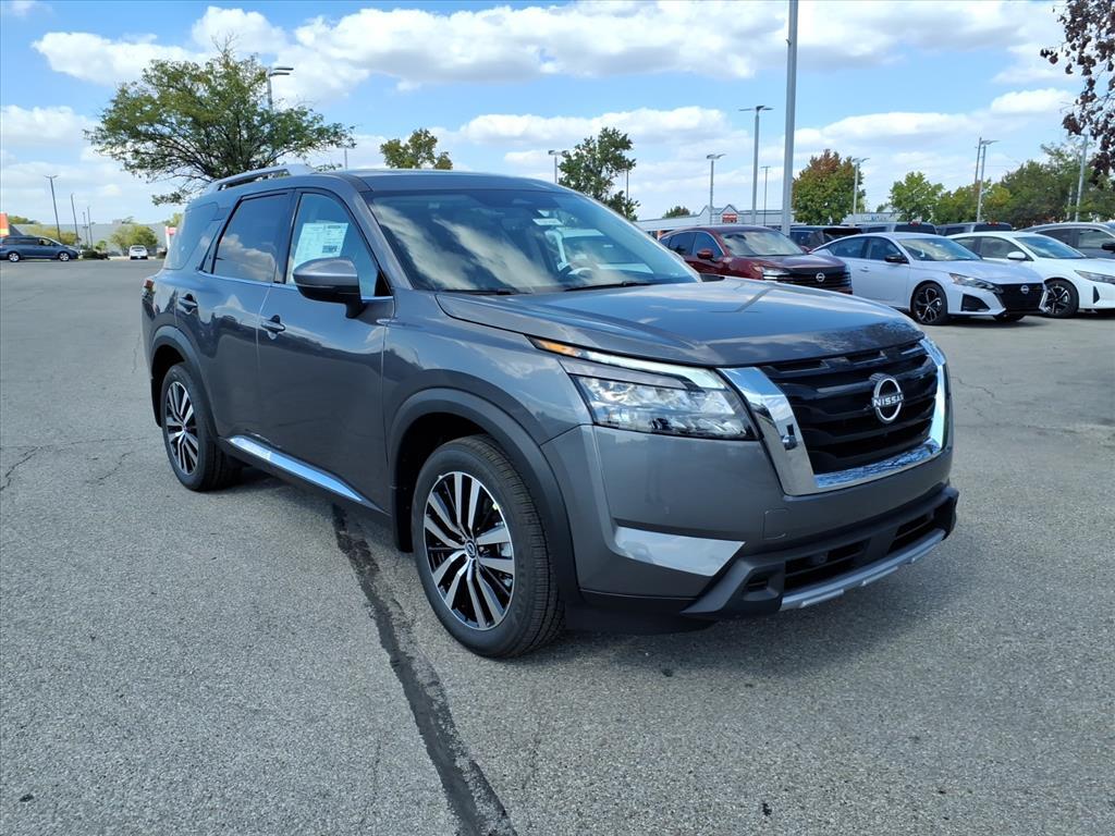 $5,000 off MSRP! Gun Metallic 2025 Nissan Pathfinder Platinum 4WD 9-Speed Automatic 3.5L V6 DOHC ANDY MOHR NISSAN OF INDIANAPOLIS has provided positive car buying experiences in Indianapolis, Plainfield, Avon, Brownsburg, Greenwood, Danville, Bloomington, Terre Haute, Columbus, Fishers, Carmel, Zionsville, Lebanon and all of Marion county since 1993. You consent to receive autodialed, pre-recorded and artificial voice telemarketing and sales calls, text messages and/or emails from or on behalf of Andy Mohr at the phone number and/or email provided in this application, including cell phone numbers. You understand that this consent is not a condition of purchase of a vehicle or any services from Andy Mohr. Price does not include Tax, Title, License and Dealer Fee; Price does include: $5000 - Nissan Customer Cash. Exp. 02/02/2026