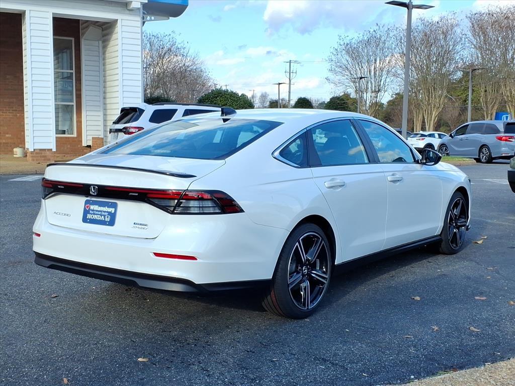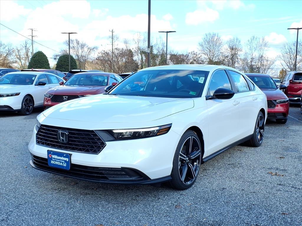 Platinum White Pearl 2025 Honda Accord Hybrid Sport FWD eCVT 2.0L I4 DOHC 16V 2.0L I4 DOHC 16V. 46/41 City/Highway MPG