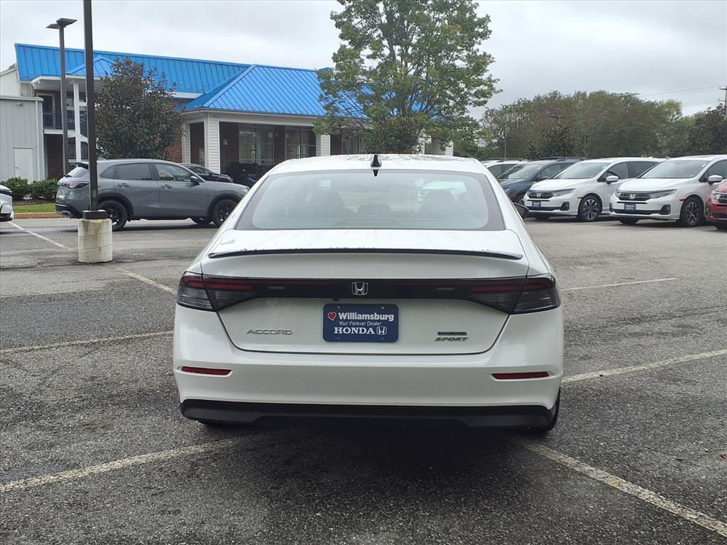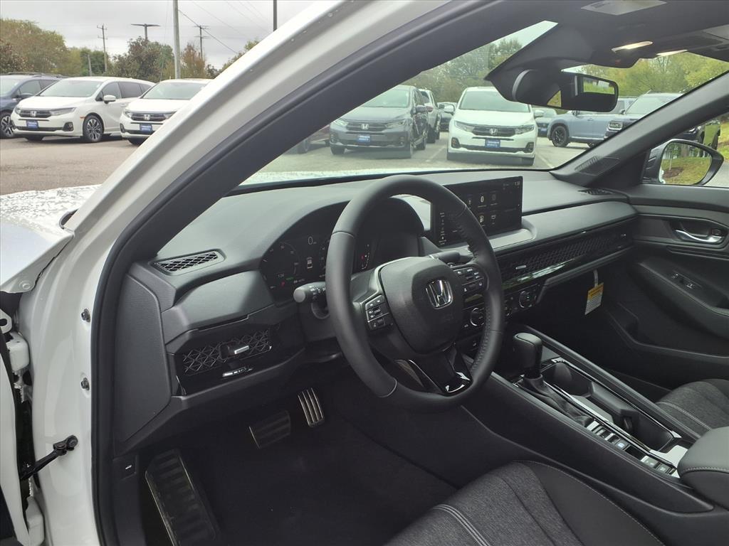 Platinum White Pearl 2025 Honda Accord Hybrid Sport FWD eCVT 2.0L I4 DOHC 16V 2.0L I4 DOHC 16V. Recent Arrival! 46/41 City/Highway MPG