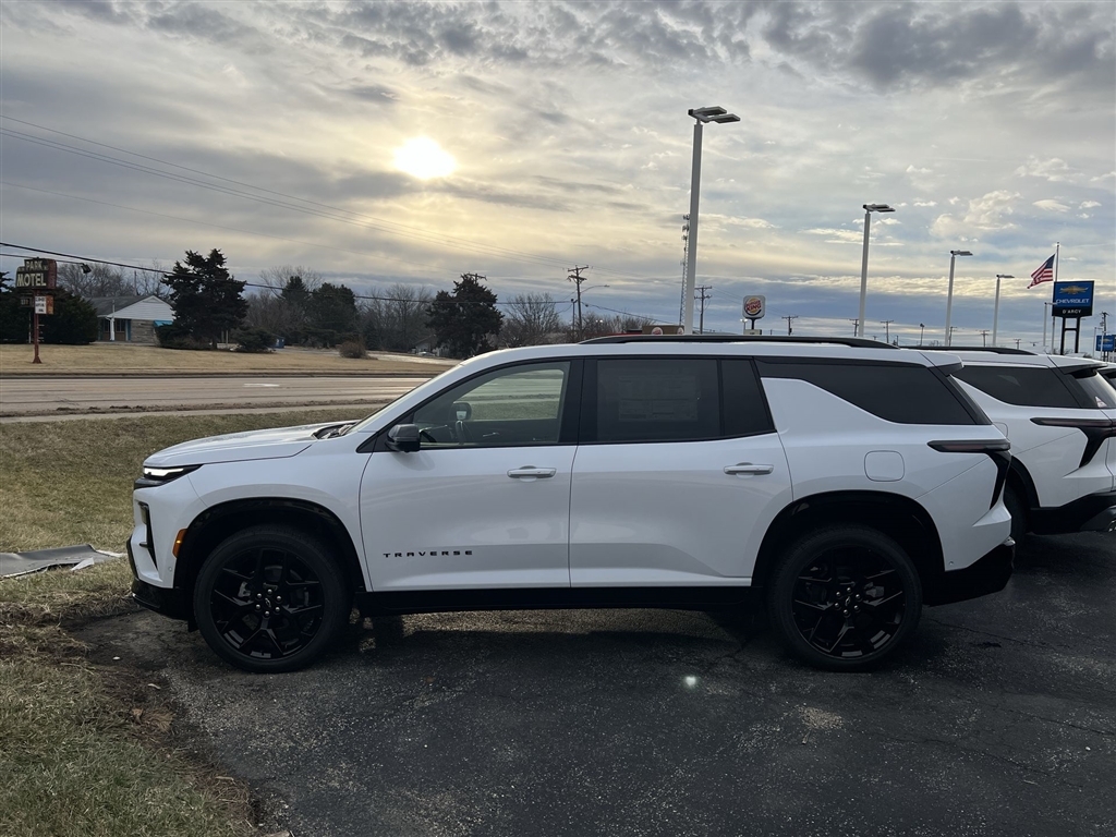 Recent Arrival!Polar White Tricoat 2026 Chevrolet Traverse RS FWD 8-Speed Automatic 2.5L DOHC20/26 City/Highway MPGDiscover the D'Arcy Difference! We care - we are here and we are ready to help! Stop by www.darcyautos.com today to see up to date information, including showroom and service hours, and how to make an appointment or schedule delivery. This vehicle has the Pulse Brake Light installed to help reduce rear end collisions. $399 will be added to the purchase price for this accessory.D'Arcy Motors has been serving Joliet and its surrounding communities for over 25 years. Our business philosophy, which is to sell cars one car at a time and to make the guest the most important part of the process, has remained the same since 1991. Putting our guests first means being a good corporate citizen and investing back into our community. We look forward to serving you!