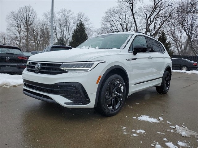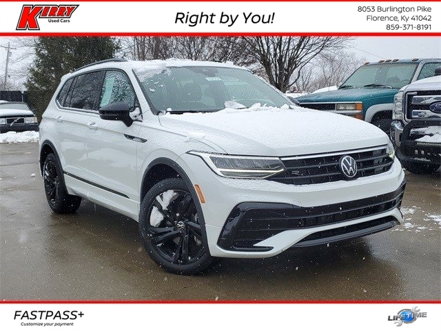 This vehicle is a 2023 Volkswagen Tiguan SE R-Line Black 4Motion, with an all wheel drive system and a 2.0 liter 4 cylinder engine that has been turbocharged. It has an impressive fuel economy of 21 mpg in the city and 28 mpg on the highway, making it an efficient choice for those looking to save money on gas. It also has a crash test rating of 4 out of 5 stars, making it one of the safest cars on the road today. With its sleek design and powerful performance, this car is sure to turn heads wherever it goes. Contact Details: Kerry Nissan of Florence, 8053 Burlington Pike, Florence, KY, 41042, jwhitson@kerrynissan.com, 8593718191.