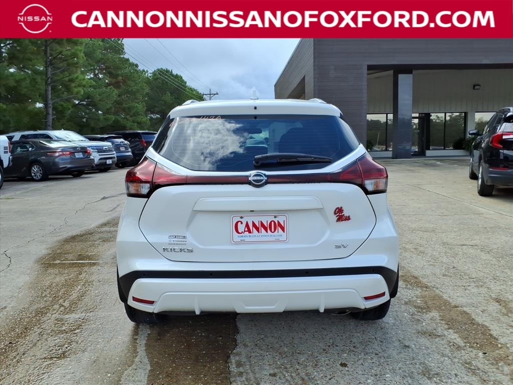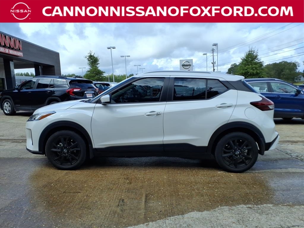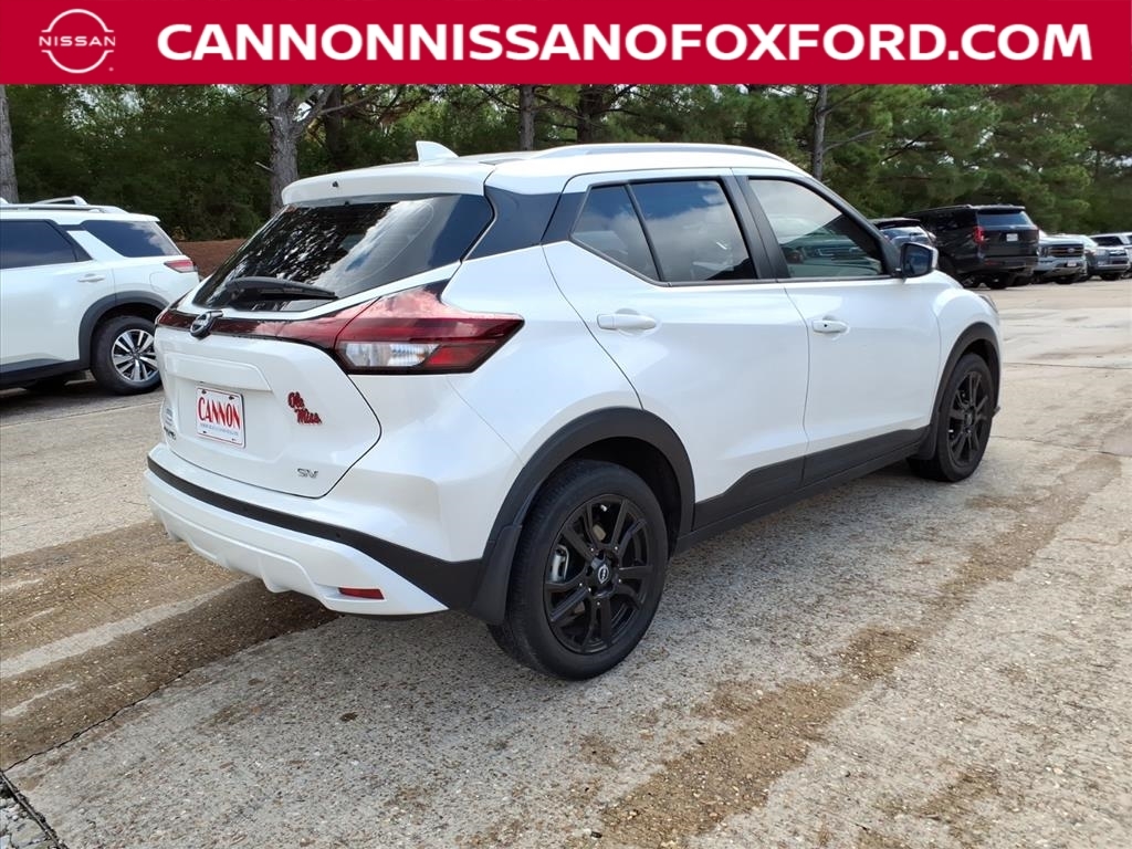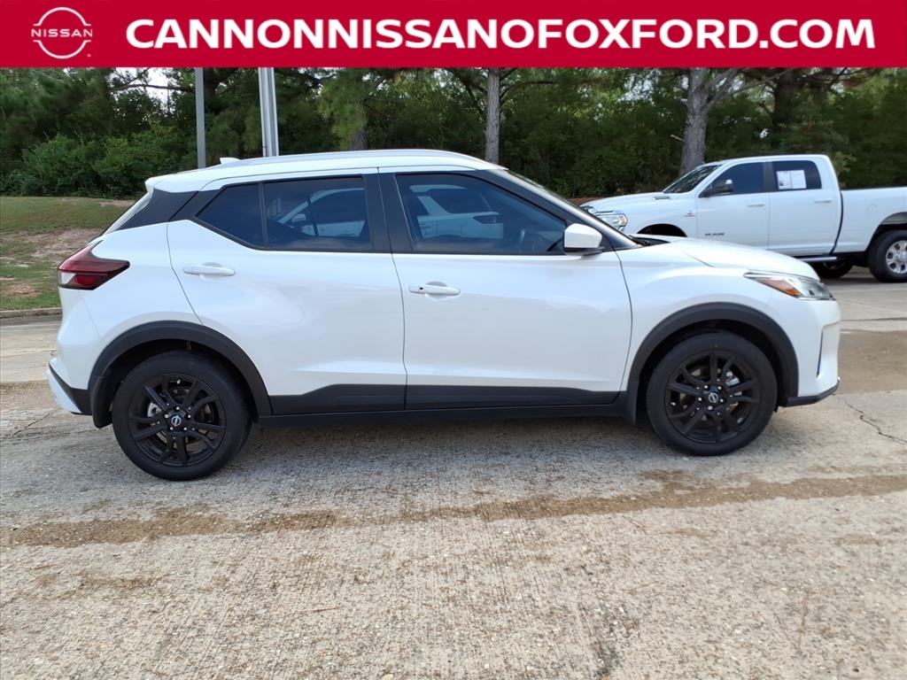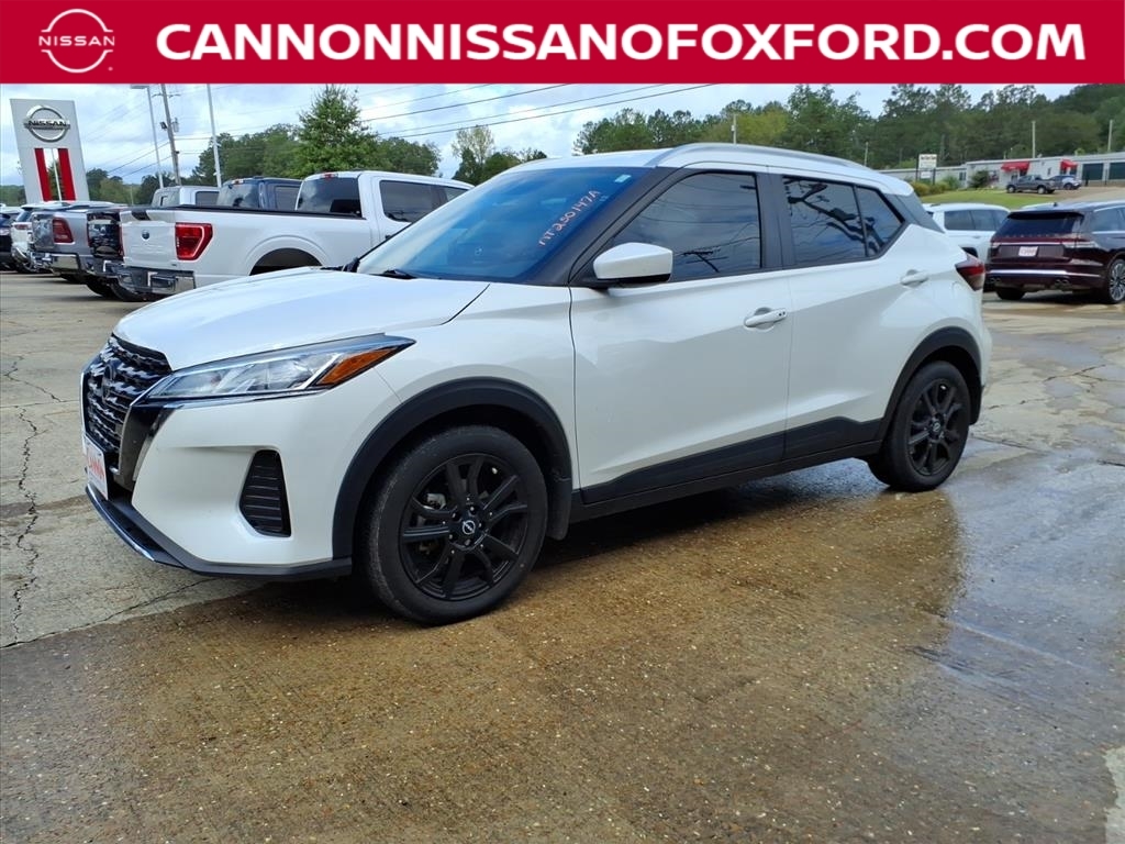 Aspen White Tricoat 2023 Nissan Kicks SV FWD CVT with Xtronic 1.6L 4-Cylinder DOHC 16V 31/36 City/Highway MPG