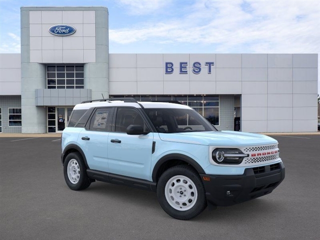 Heated Seats, Lane Keeping Assist, Blind Spot Monitor, Keyless Start, Onboard Communications System, Satellite Radio, Back-Up Camera, 4x4. Heritage trim, Robins Egg Blue exterior and Navy Pier interior. EPA 30 MPG Hwy/25 MPG City! KEY FEATURES INCLUDE4x4, Back-Up Camera, Satellite Radio, iPod/MP3 Input, Onboard Communications System, Aluminum Wheels, Keyless Start, Blind Spot Monitor, Lane Keeping Assist, Cross-Traffic Alert. MP3 Player, Privacy Glass, Keyless Entry, Steering Wheel Controls. Ford Heritage with Robins Egg Blue exterior and Navy Pier interior features a 3 Cylinder Engine with 181 HP at 6000 RPM*. OPTION PACKAGESCONVENIENCE PACKAGE Premium Wrapped Steering Wheel, Heated 8-Way Power Drivers Seat, (Fore/aft, up/down, recline, lumbar), LED Fog Lamps, FORD CONNECTIVITY PACK (1-TIME PURCHASE - 7 YEARS) unlimited Wi-Fi hotspot, audio and video streaming, voice assistant and entertainment, Select option for a one-time purchase of Ford connectivity package, Ford connectivity package will be active for 7 years on this vehicle (non-transferrable to another VIN) from warranty start date, Requires activation via Ford app, Evolving technology/cellular networks/vehicle capability may limit functionality and prevent operation of connected features, Ford may temporarily slow data speeds if such data usage reaches or exceeds 50GB within a 30-day period or due to network limitations, If a customer uses more than 50% of their data usage in a roaming country during a 60-day period, Ford may remove or limit the customers data plan, ENGINE: 1.5L ECOBOOST auto start-stop technology (STD). WHO WE AREWe invite our neighbors in New England to visit Best Ford, where your satisfaction is our mission. Our commitment to offering an unparalleled selection of new vehicles is matched only by our dedication to providing a buying experience that is second to none. With offerings like service loaners, pick-up and delivery options, and mobile service, Best Ford is revolutionizing how you maintain your vehicle. Shop the Best first!BEST price BEST Selection BEST Service! COMMUNITY COMMITMENTAt Best Ford, we believe in more than just selling vehicles we are committed to making a difference, both on and off the road. With donations exceeding $149,856 to local organizations including The Boys & Girls Club, United Way, Boston Childrens Hospital, and Nashua Childrens Home, we are deeply invested in the prosperity a