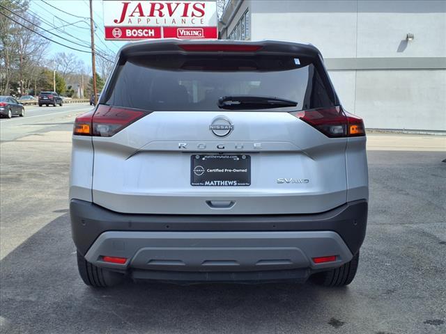 Brilliant Silver Metallic 2023 Nissan Rogue SV AWD | CVT with Xtronic | 1.5L Turbocharged I3 DOHC 12V (201 HP) This one-owner 2023 Nissan Rogue SV AWD offers impressive fuel efficiency, advanced driver-assist technology, and everyday versatility in a modern compact SUV. Powered by Nissans innovative 1.5L turbocharged engine producing 201 horsepower and paired with a CVT with Xtronic and intelligent all-wheel drive, the Rogue delivers confident performance and a smooth, responsive ride in all driving conditions. Finished in Brilliant Silver Metallic with a Charcoal cloth interior, this Rogue SV is well-equipped with the features todays drivers value most. Key Features & Highlights One Owner Vehicle ProPILOT Assist Intelligent Cruise Control with Full Speed Range & Hold Power Driver Seat Rear Parking Sensors Rear Spoiler Illuminated Entry Technology & Connectivity NissanConnect featuring Apple CarPlay & Android Auto AM/FM Radio with SiriusXM WiFi Hotspot Capability 6-Speaker Audio System Safety & Driver Assistance Active Cruise Control Auto High-Beam Headlights NissanConnect Emergency Communication System Speed-Sensitive Windshield Wipers Rear Window Wiper Interior & Exterior Cloth Seat Trim Front Bucket Seats 18Aluminum Alloy Wheels Fuel Economy EPA-estimated 28 City / 35 Highway MPG This 2023 Rogue SV AWD is an excellent choice for drivers seeking modern safety technology, outstanding efficiency, and the added confidence of all-wheel drive. Independence Nissan of Wellesley
