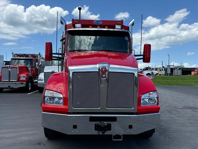 On the ground and ready for immediate delivery! New 2025 Kenworth T880 chassis with Heritage 17' steel dump body, matching Viper Red truck chassis and dump body plus additional dump body extra options, see full spec sheet for details. Equipped with a PACCAR MX-13 12.9L engine with 510 horsepower, 1,850 lb.-ft. torque, engine compression brake, Allison 4500RDS 6-speed automatic transmission, 221 wheelbase, 4.30 rear axle ratio, rear locking differential, 20,000# front axle, 46,000# rear tandems, 13,200# steerable pusher axle, 79,200# GVWR, Kenworth AG460 rear air suspension, 90-gallon fuel tank, unique Viper Red exterior color. Contact us for full chassis and body specs today!