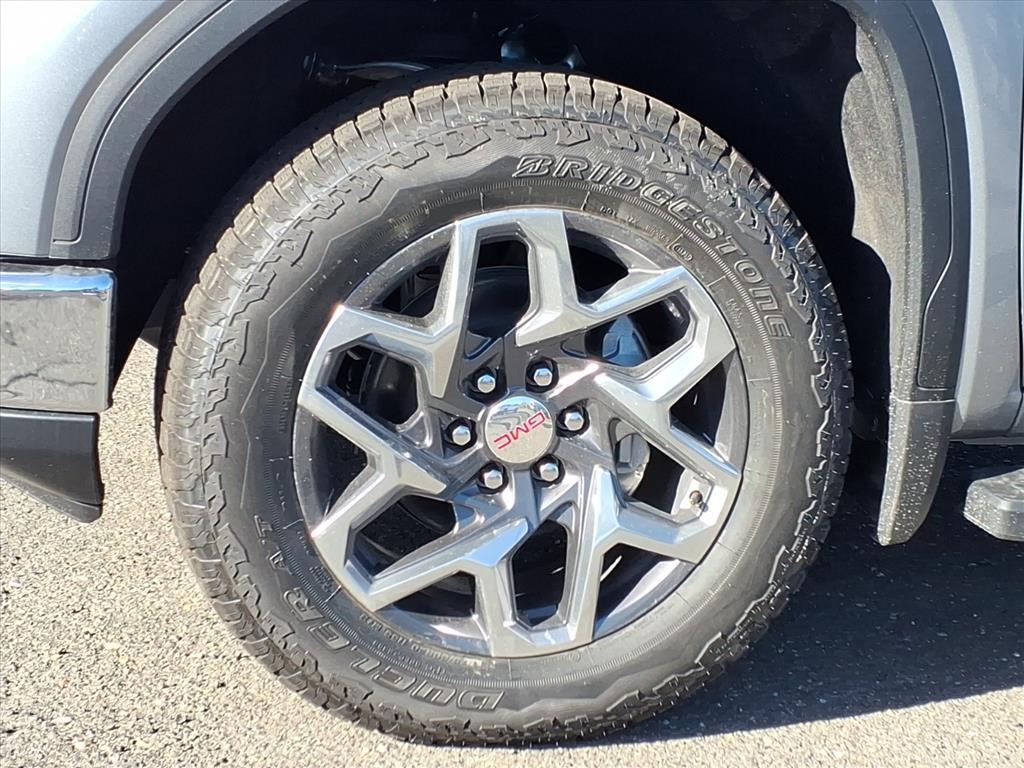 Sterling Metallic 2026 GMC Sierra 1500 SLT 10-Way Power Driver Seat Adjuster w/Lumbar, 10-Way Power Passenger Seat Adjuster w/Lumbar, 120-Volt Bed Mounted Power Outlet, 120-Volt Interior Power Outlet, 170 Amp Alternator, 2 Charge/Data USB Ports, 2 Charge/Data USB Ports Inside Center Console, 2 Type-C Charge-Only Rear USB Ports, 20Polished Aluminum Wheels, 3.23 Rear Axle Ratio, 4-Wheel Disc Brakes, 6 Speakers, 6-Speaker Audio System Feature, ABS brakes, Adaptive Cruise Control, Air Conditioning, All-Weather Floor Liner (LPO), Alloy wheels, AM/FM radio: SiriusXM with 360L, Apple CarPlay/Android Auto, Auto High-beam Headlights, Auto-dimming door mirrors, Auto-dimming Rear-View mirror, Auto-Locking Rear Differential, Automatic Emergency Braking, Automatic temperature control, Auxiliary External Transmission Oil Cooler, Brake assist, Buckle to Drive, Bumpers: chrome, Chrome Header & Chrome Grille Insert Bars, Chrome Wheel To Wheel Assist Steps, Color-Keyed Carpeting Floor Covering, Compass, Deep-Tinted Glass, Delay-off headlights, Driver door bin, Driver Memory, Driver vanity mirror, Dual Exhaust System, Dual front impact airbags, Dual front side impact airbags, Electric Rear-Window Defogger, Electronic Precision Shift, Electronic Stability Control, Emergency communication system: OnStar, Floor-Mounted Center Console, Following Distance Indicator, Forward Collision Alert, Front 40/20/40 Split-Bench Seat, Front anti-roll bar, Front Bucket Seats, Front Center Armrest w/Storage, Front dual zone A/C, Front fog lights, Front Frame-Mounted Black Recovery Hooks, Front License Plate Kit, Front Pedestrian Braking, Front Rain-Sensing Wipers, Front reading lights, Front wheel independent suspension, Fully automatic headlights, HD Rear Vision Camera, HD Surround Vision, Heated 2nd Row Outboard Seats, Heated door mirrors, Heated Driver & Front Outboard Passenger Seating, Heated front seats, Heated steering wheel, Heavy-Duty Air Filter, High Capacity Suspension Package, Hill Descent Control, Hitch Guidance, Hitch View, Illuminated entry, In-Vehicle Trailering System App, Integrated Trailer Brake Controller, IntelliBeam Automatic High Beam On/Off, Keyless Open & Start, Lane Keep Assist w/Lane Departure Warning, LED Cargo Area Lighting, Low tire pressure warning, Manual Tilt-Wheel & Telescoping Steering Column, Memory seat, Navigation System, Occupant sensing airbag, Off-Road Suspension, OnStar Services Capable, Outside temperature display, Overhead airbag, Overhead console,