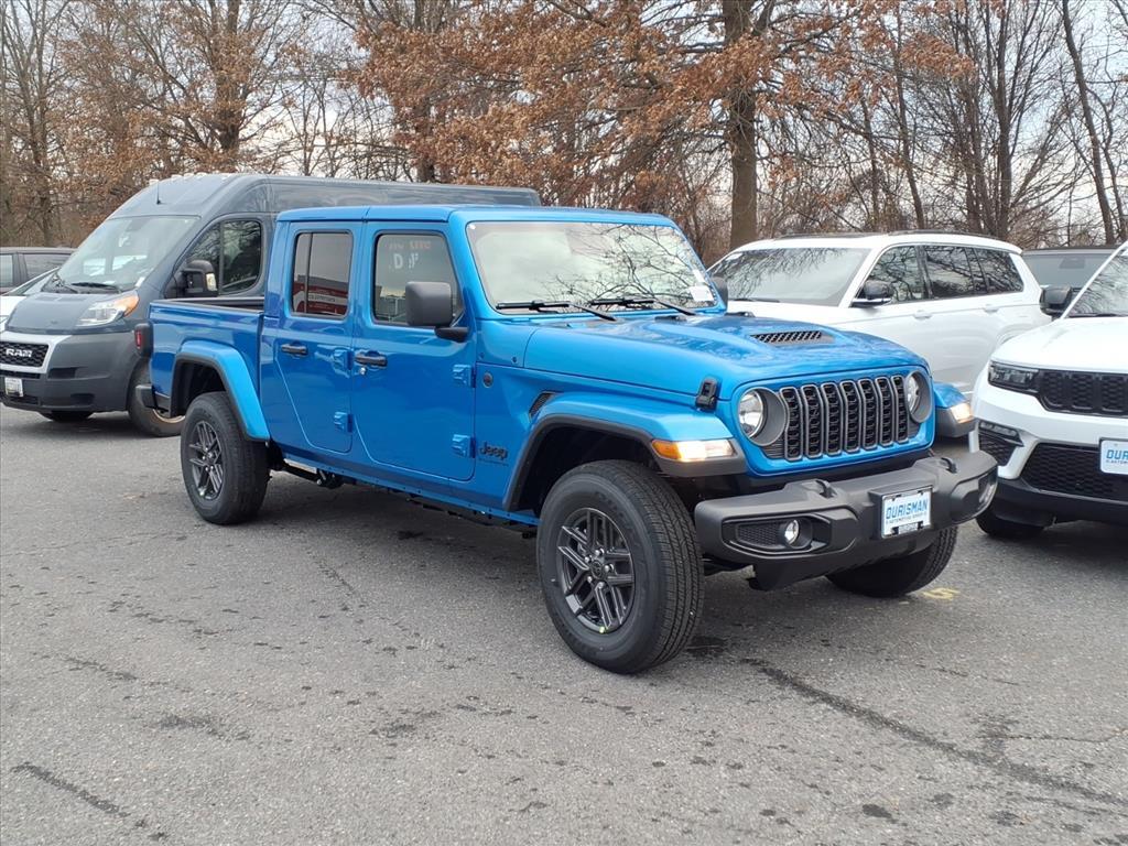 This NEW 2026 hydro blue pearlcoat Jeep Gladiator Sport S 4WD is well equipped and includes these features and benefits: Convenience Group (Air Conditioning with Auto Temp Control, Cluster 7.0TFT Color Display, Corning Gorilla Glass, Daytime Running Lamp System, Emergency/Assistance Call, Front Door Locks 2-Door Passive Entry, Heated Front Seats, Heated Steering Wheel, Remote Start System, and Universal Garage Door Opener), Dark Sky Appearance Package (2-Piece Body Color Fender Flares, Mold in Color Bumper with Gloss Black, and Performance Hood), Quick Order Package 24S Sport S (Advanced Brake Assist, Automatic Headlamps, Deep Tint Sunscreen Windows, Full Speed Forward Collision Warning Plus, Normal Duty Plus Suspension, Power Heated Mirrors, Premium Wrapped Steering Wheel, Security Alarm, Sun Visors with Illuminated Vanity Mirrors, and Wheels: 17x 7.5Gray), 110 Mph Vehicle Max Speed Calibration, 12.3Touchscreen Display, 3.73 Rear Axle Ratio, 4-Wheel Disc Brakes, 4G LTE Wi-Fi Hot Spot, 8 Speakers, ABS brakes, Air Conditioning, Alexa Built-in, AM/FM radio: SiriusXM with 360L, Apple CarPlay, Apple CarPlay/Android Auto, Body Color 3-Piece Hard Top, Brake assist, Cloth Low-Back Bucket Seats, Compass, Connectivity - US/Canada, Delay-off headlights, Driver door bin, Driver vanity mirror, Dual front impact airbags, Dual front side impact airbags, Electronic Stability Control, Freedom Panel Storage Bag, Front anti-roll bar, Front Bucket Seats, Front Center Armrest w/Storage, Front fog lights, Front License Plate Bracket, Front reading lights, Google Android Auto, Illuminated entry, Integrated roll-over protection, Low tire pressure warning, MOPAR All-Weather Slush Mats, MOPAR Spray in Bedliner, Normal Duty Suspension, Occupant sensing airbag, Outside temperature display, Overhead airbag, Panic alarm, ParkView Rear Back-Up Camera, Passenger door bin, Passenger vanity mirror, Power steering, Power windows, Radio data system, Radio: Uconnect 5 with 12.3Display, Rear anti-roll bar, Rear reading lights, Rear Sliding Window, Rear Window Defroster, Remote keyless entry, Speed control, Split folding rear seat, Steering wheel mounted audio controls, Tachometer, Telescoping steering wheel, Tilt steering wheel, Traction control, Trip computer, USB Host Flip, Variably intermittent wipers, Voltmeter, and Wheels: 17x 7.5Black Steel Styled. Price excludes tax, title, tags, registration, freight/destination fees, electronic filing fee, and a $800 processing fee (no