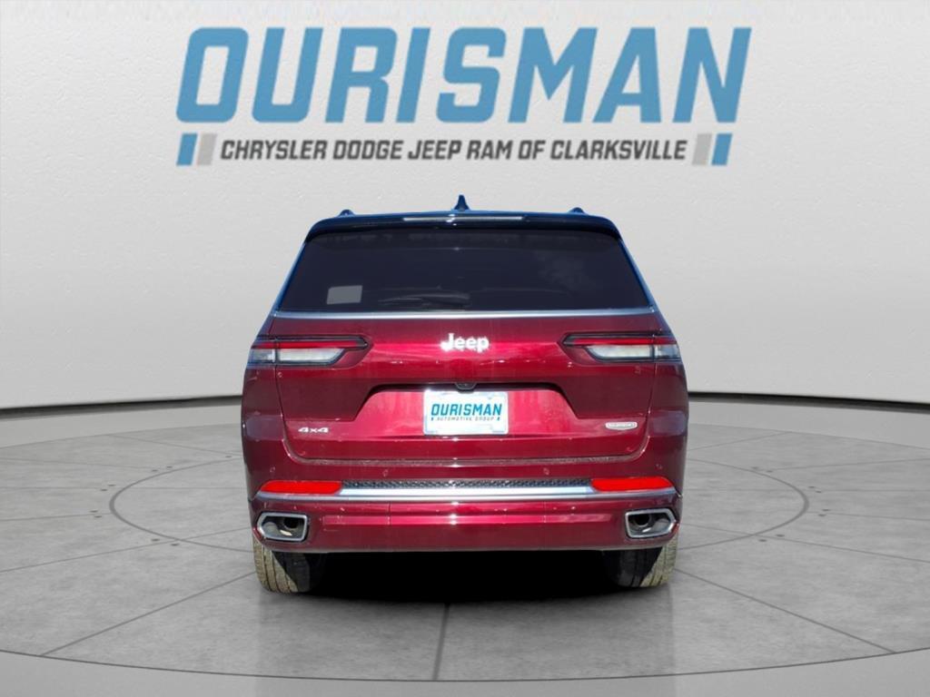 This NEW 2025 Velvet Red Pearlcoat Jeep Grand Cherokee L Summit 4WD is well equipped and includes these features and benefits: Luxury Tech Group V (2nd Row Manual Window Shades and Wireless Charging Pad), Quick Order Package 23S, 10 Speakers, 2nd Row 60/40 Bench with Manual Tip/Slide, 2nd Row Seat Center Armrest/Cupholders, 3 Rear Seat Head Restraints, 3.45 Rear Axle Ratio, 3rd row seats: split-bench, 4-Wheel Disc Brakes, 7-Passenger Seating, ABS brakes, Active Noise Control System, Adaptive suspension, Air Conditioning, Alloy wheels, AM/FM radio: SiriusXM with 360L, Anti-whiplash front head restraints, Audio memory, Auto High-beam Headlights, Auto-dimming door mirrors, Auto-dimming Rear-View mirror, Auto-leveling suspension, Automatic temperature control, Brake assist, Bumpers: body-color, Center Rear 3-Point Seat Belt, Compass, Delay-off headlights, Driver door bin, Driver vanity mirror, Dual front impact airbags, Dual front side impact airbags, Electronic Stability Control, Emergency communication system, Four wheel independent suspension, Front anti-roll bar, Front Bucket Seats, Front Center Armrest w/Storage, Front dual zone A/C, Front fog lights, Front License Plate Bracket, Front Passenger Interactive Display, Front reading lights, Fully automatic headlights, Garage door transmitter, Genuine wood dashboard insert, Genuine wood door panel insert, Heated door mirrors, Heated front seats, Heated rear seats, Heated steering wheel, Illuminated entry, Knee airbag, Leather steering wheel, Low tire pressure warning, Memory seat, Model Year Tracking, Nappa Leather Seats, Navigation System, Normal Duty Suspension, Occupant sensing airbag, Outside temperature display, Overhead airbag, Overhead console, Panic alarm, Passenger door bin, Passenger vanity mirror, Power door mirrors, Power driver seat, Power Fold Seatbacks, Power Liftgate, Power moonroof, Power passenger seat, Power steering, Power windows, Radio data system, Radio: Uconnect 5 Nav with 10.1Display, Rain sensing wipers, Rear air conditioning, Rear anti-roll bar, Rear dual zone A/C, Rear reading lights, Rear seat center armrest, Rear window defroster, Rear window wiper, Reclining 3rd row seat, Remote keyless entry, Security system, Speed control, Speed-Sensitive Wipers, Split folding rear seat, Spoiler, Steering wheel memory, Steering wheel mounted audio controls, Tachometer, Telescoping steering wheel, Tilt steering wheel, Traction control, Trip computer, Turn signal indicator mirrors, Variably in
