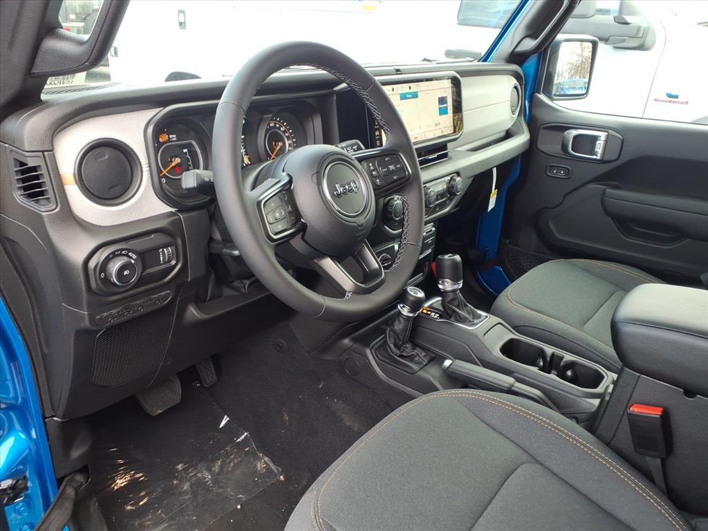 This NEW 2026 Hydro Blue Pearl Coat Jeep Wrangler Sport S 4WD is well equipped and includes these features and benefits: Convenience Group (2-Door Passive Entry, Front Door Locks, Air Conditioning with Auto Temp Control, Air Filtering, Cluster 7.0TFT Color Display, Emergency/Assistance Call, Heated Front Seats, Heated Steering Wheel, and Universal Garage Door Opener), Quick Order Package 22S Sport S (Advanced Brake Assist, Automatic Headlamps, Corning Gorilla Glass, Deep Tint Sunscreen Windows, Enhanced Adaptive Cruise Control, Full Speed Forward Collision Warning Plus, Power Heated Mirrors, Premium Wrapped Steering Wheel, Security Alarm, Sun Visors with Illuminated Vanity Mirrors, and Wheels: 17x 7.5Gray), 12.3Touchscreen Display, 3.45 Overall Top Gear Ratio, 4-Wheel Disc Brakes, 4G LTE Wi-Fi Hot Spot, 8 Speakers, ABS brakes, Air Conditioning, AM/FM radio: SiriusXM with 360L, Apple CarPlay, Apple CarPlay/Android Auto, Aux Battery, Black 3-Piece Hard Top, Brake assist, Cloth Low-Back Bucket Seats, Compass, Connectivity - US/Canada, Delay-off headlights, Driver door bin, Driver vanity mirror, Dual front impact airbags, Dual front side impact airbags, Electronic Stability Control, For More Info, Call 800-643-2112, Freedom Panel Storage Bag, Front anti-roll bar, Front Bucket Seats, Front Center Armrest w/Storage, Front fog lights, Front reading lights, Google Android Auto, Illuminated entry, Integrated Center Stack Radio, Integrated roll-over protection, Jeep Trail Rated Kit, Low tire pressure warning, MOPAR All-Weather Floor Mats, Non-Lock Fuel Cap Without Discriminator, Normal Duty Suspension, Occupant sensing airbag, Outside temperature display, Overhead airbag, Panic alarm, ParkView Rear Back-Up Camera, Passenger door bin, Passenger vanity mirror, Power steering, Power windows, Radio data system, Radio: Uconnect 5 with 12.3Display, Rear anti-roll bar, Rear reading lights, Rear Window Defroster, Rear Window Wiper/Washer, Remote keyless entry, SiriusXM Radio Service, SiriusXM with 360L, Speed control, Steering wheel mounted audio controls, Stop-Start Dual Battery System, Tachometer, Telescoping steering wheel, Tilt steering wheel, Traction control, Trip computer, Variably intermittent wipers, and Wheels: 17x 7.5Black Steel Styled. Price excludes tax, title, tags, registration, freight/destination fees, electronic filing fee, and a $800 processing fee (not required by law). Optional iKon coverage ($1,295) not included. Most prices include appl