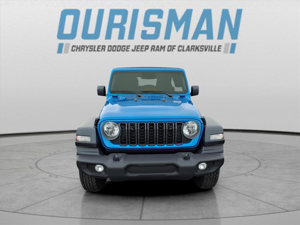 This NEW 2026 Hydro Blue Pearl Coat Jeep Wrangler Sport S 4WD is well equipped and includes these features and benefits: Convenience Group (2-Door Passive Entry, Front Door Locks, Air Conditioning with Auto Temp Control, Air Filtering, Cluster 7.0TFT Color Display, Emergency/Assistance Call, Heated Front Seats, Heated Steering Wheel, and Universal Garage Door Opener), Quick Order Package 24S Sport S (Advanced Brake Assist, Automatic Headlamps, Corning Gorilla Glass, Deep Tint Sunscreen Windows, Enhanced Adaptive Cruise Control, Full Speed Forward Collision Warning Plus, Power Heated Mirrors, Premium Wrapped Steering Wheel, Security Alarm, Sun Visors with Illuminated Vanity Mirrors, and Wheels: 17x 7.5Gray), 12.3Touchscreen Display, 3.45 Overall Top Gear Ratio, 4-Wheel Disc Brakes, 4G LTE Wi-Fi Hot Spot, 8 Speakers, ABS brakes, Air Conditioning, AM/FM radio: SiriusXM with 360L, Apple CarPlay, Apple CarPlay/Android Auto, Aux Battery, Brake assist, Compass, Connectivity - US/Canada, Delay-off headlights, Driver door bin, Driver vanity mirror, Dual front impact airbags, Dual front side impact airbags, Electronic Stability Control, For More Info, Call 800-643-2112, Front anti-roll bar, Front Bucket Seats, Front Center Armrest w/Storage, Front fog lights, Front reading lights, Google Android Auto, Illuminated entry, Integrated Center Stack Radio, Integrated roll-over protection, Low tire pressure warning, MOPAR All-Weather Floor Mats, Non-Lock Fuel Cap Without Discriminator, Normal Duty Suspension, Occupant sensing airbag, Outside temperature display, Overhead airbag, Panic alarm, ParkView Rear Back-Up Camera, Passenger door bin, Passenger vanity mirror, Power steering, Power Top Quarter Window Storage Bag, Power windows, Radio data system, Radio: Uconnect 5 with 12.3Display, Rear anti-roll bar, Rear reading lights, Rear Window Defroster, Rear Window Wiper/Washer, Remote keyless entry, Removable Rear Quarter Windows, SiriusXM Radio Service, SiriusXM with 360L, Sky One-Touch Power Top, Speed control, Split folding rear seat, Steering wheel mounted audio controls, Stop-Start Dual Battery System, Tachometer, Telescoping steering wheel, Tilt steering wheel, Traction control, Trip computer, Variably intermittent wipers, Wheels: 17x 7.5Black Steel Styled, and Wheels: 17x 7.5Machined with Black Pockets. Price excludes tax, title, tags, registration, freight/destination fees, electronic filing fee, and a $800 processing fee (not required by law). Opti