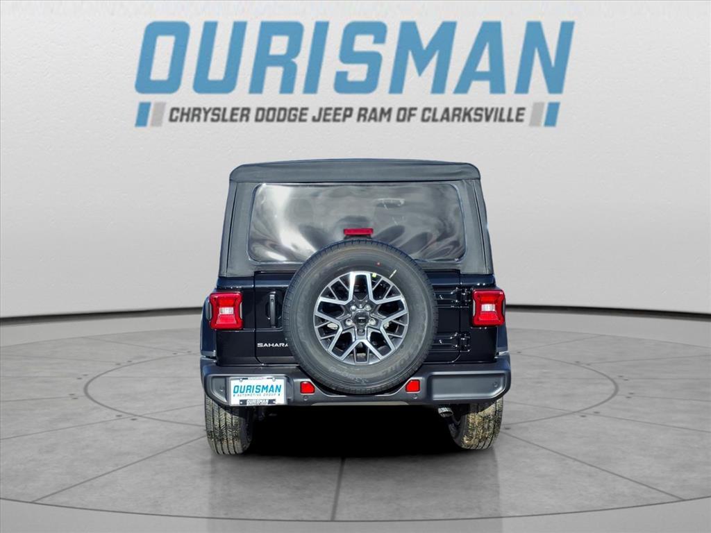 This NEW 2026 Black Clearcoat Jeep Wrangler Sahara 4WD is well equipped and includes these features and benefits: Quick Order Package 22G, Sahara Popular Equipment Group (12.3Touchscreen Display, 4G LTE Wi-Fi Hot Spot, Alpine Premium Audio System, Apple CarPlay, Auto High Beam Headlamp Control, Auto-Dimming Rear-View Mirror, Blind Spot & Cross Path Detection, Connected Travel & Traffic Services, Connectivity - US/Canada, For More Info, Call 800-643-2112, Google Android Auto, GPS Navigation, Hard Seat Back, HD Radio, Integrated Center Stack Radio, Integrated Off-Road Camera, Integrated Voice Command w/Bluetooth, Leather Wrapped Park Brake Handle, Leather Wrapped Shift Knob, McKinley Trimmed Seats, ParkSense Rear Park Assist System, Power 4-Way Driver Lumbar Adjust, Power 4-Way Passenger Lumbar Adjust, Power Adjust 8-Way Driver Seat, Power Adjust 8-Way Front Passenger Seat, Radio: Uconnect 5 Nav w/12.3Display, Side Steps, SiriusXM Radio Service, SiriusXM w/360L, and Universal Garage Door Opener), 3.45 Overall Top Gear Ratio, 4-Wheel Disc Brakes, 8 Speakers, ABS brakes, Air Conditioning, Alloy wheels, AM/FM radio: SiriusXM with 360L, Apple CarPlay/Android Auto, Automatic temperature control, Aux Battery, Brake assist, Cloth Low-Back Bucket Seats, Compass, Delay-off headlights, Driver door bin, Driver vanity mirror, Dual front impact airbags, Dual front side impact airbags, Electronic Stability Control, Emergency communication system: Jeep Connect, Front anti-roll bar, Front Bucket Seats, Front Center Armrest w/Storage, Front dual zone A/C, Front fog lights, Front License Plate Bracket, Front reading lights, Fully automatic headlights, Heated door mirrors, Heated front seats, Heated steering wheel, Heavy Duty Suspension w/Gas Shocks, Illuminated entry, Integrated roll-over protection, Jeep Trail Rated Kit, Low tire pressure warning, MOPAR All-Weather Floor Mats, Non-Lock Fuel Cap w/o Discriminator, Occupant sensing airbag, Outside temperature display, Overhead airbag, Panic alarm, ParkView Rear Back-Up Camera, Passenger door bin, Passenger vanity mirror, Power door mirrors, Power steering, Power windows, Radio data system, Radio: Uconnect 5 w/12.3Display, Rear anti-roll bar, Rear reading lights, Remote keyless entry, Security system, Speed control, Split folding rear seat, Steering wheel mounted audio controls, Stop-Start Dual Battery System, Tachometer, Telescoping steering wheel, Tilt steering wheel, Traction control, Trip computer, Variably intermitte